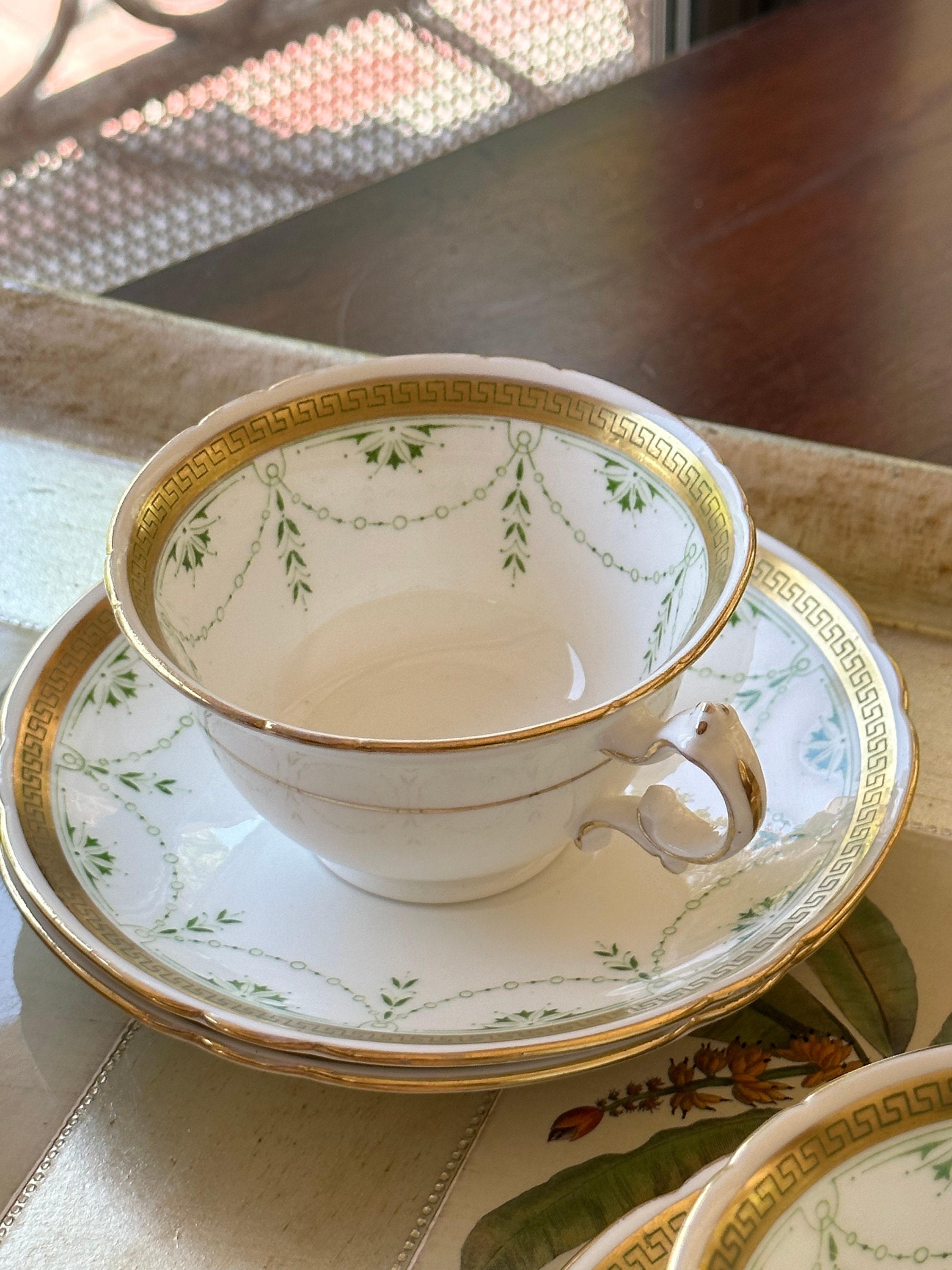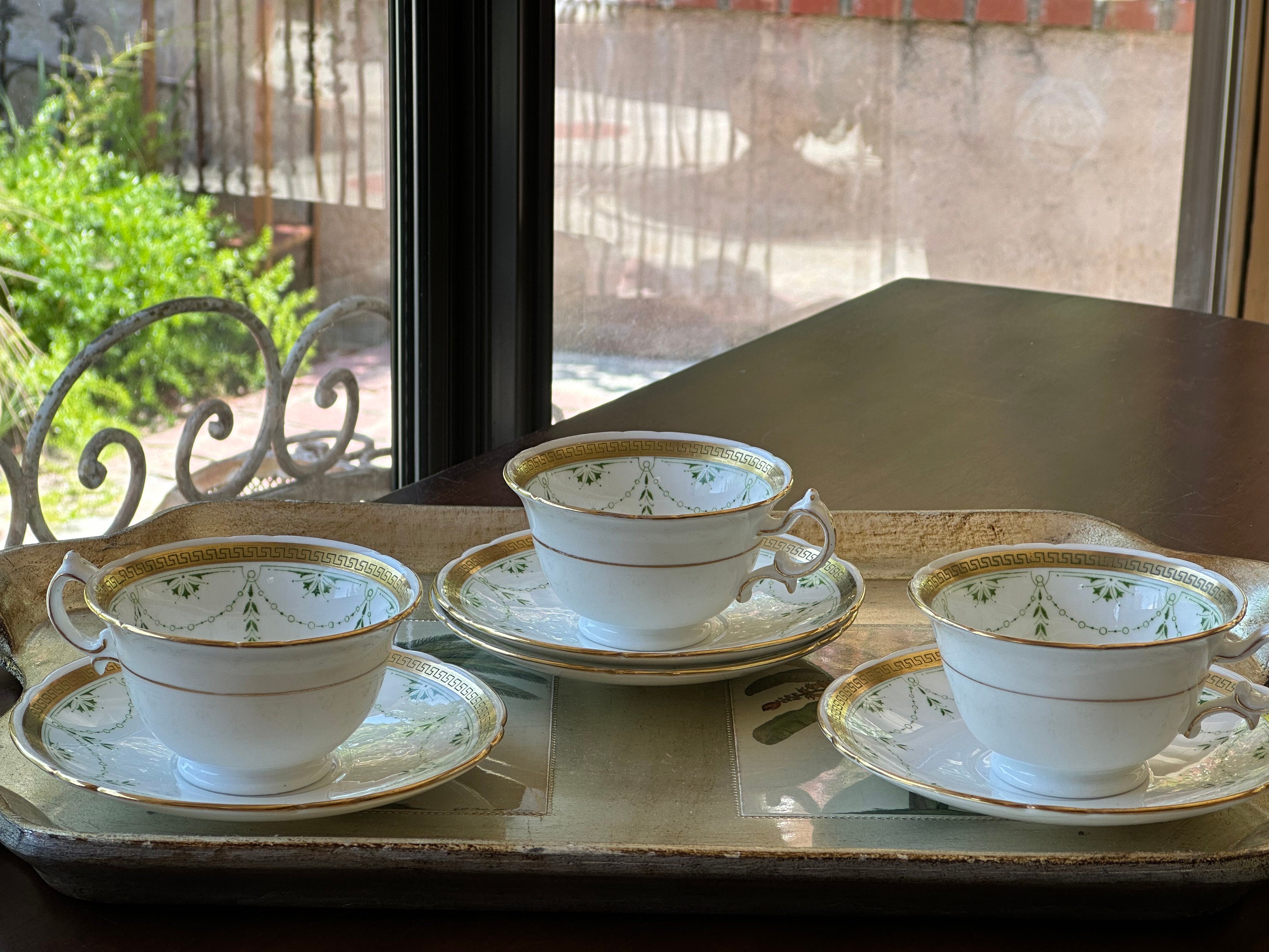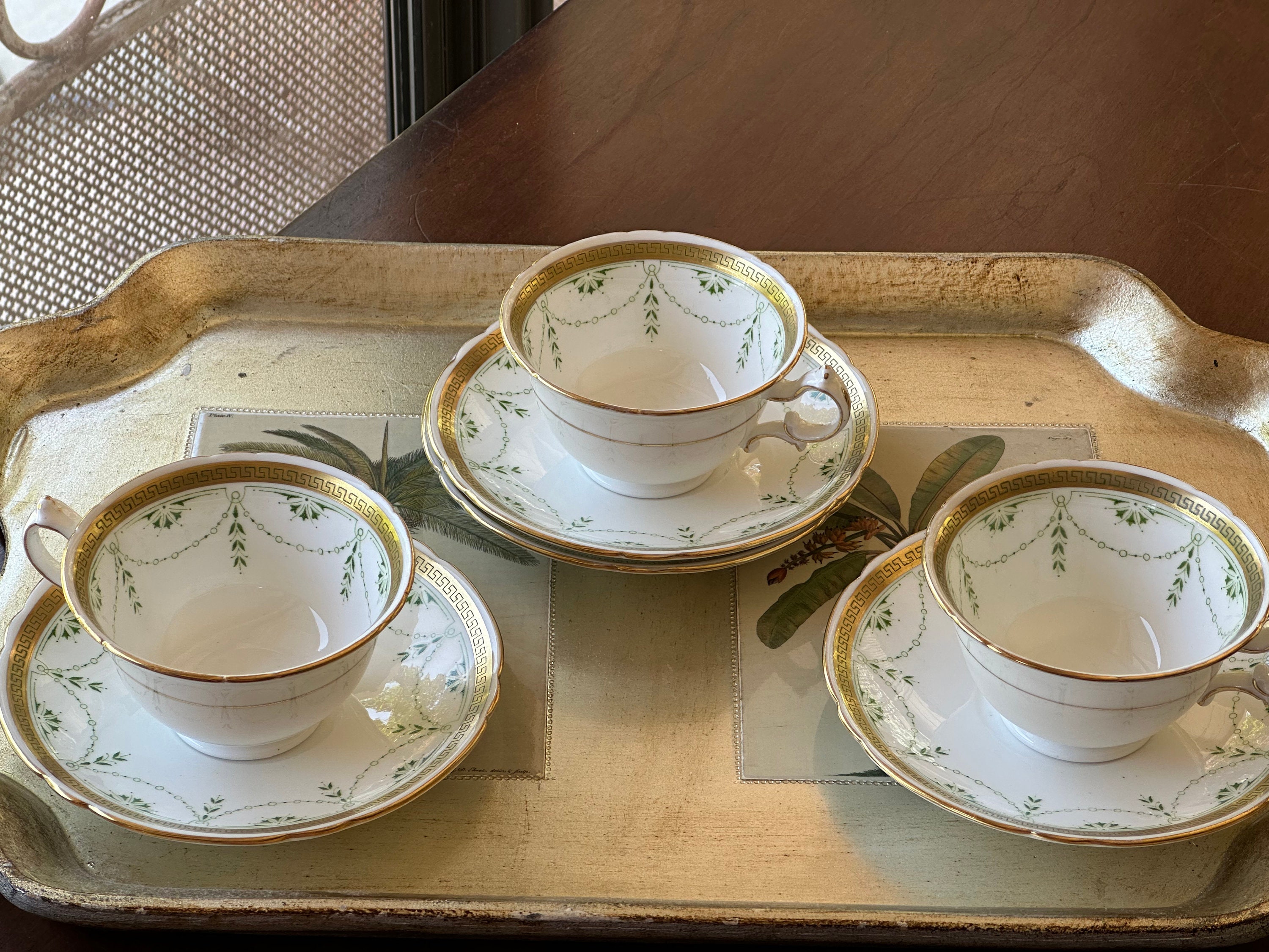 There is a skillful wide gilded band of the Greek key at the rim of every piece.
