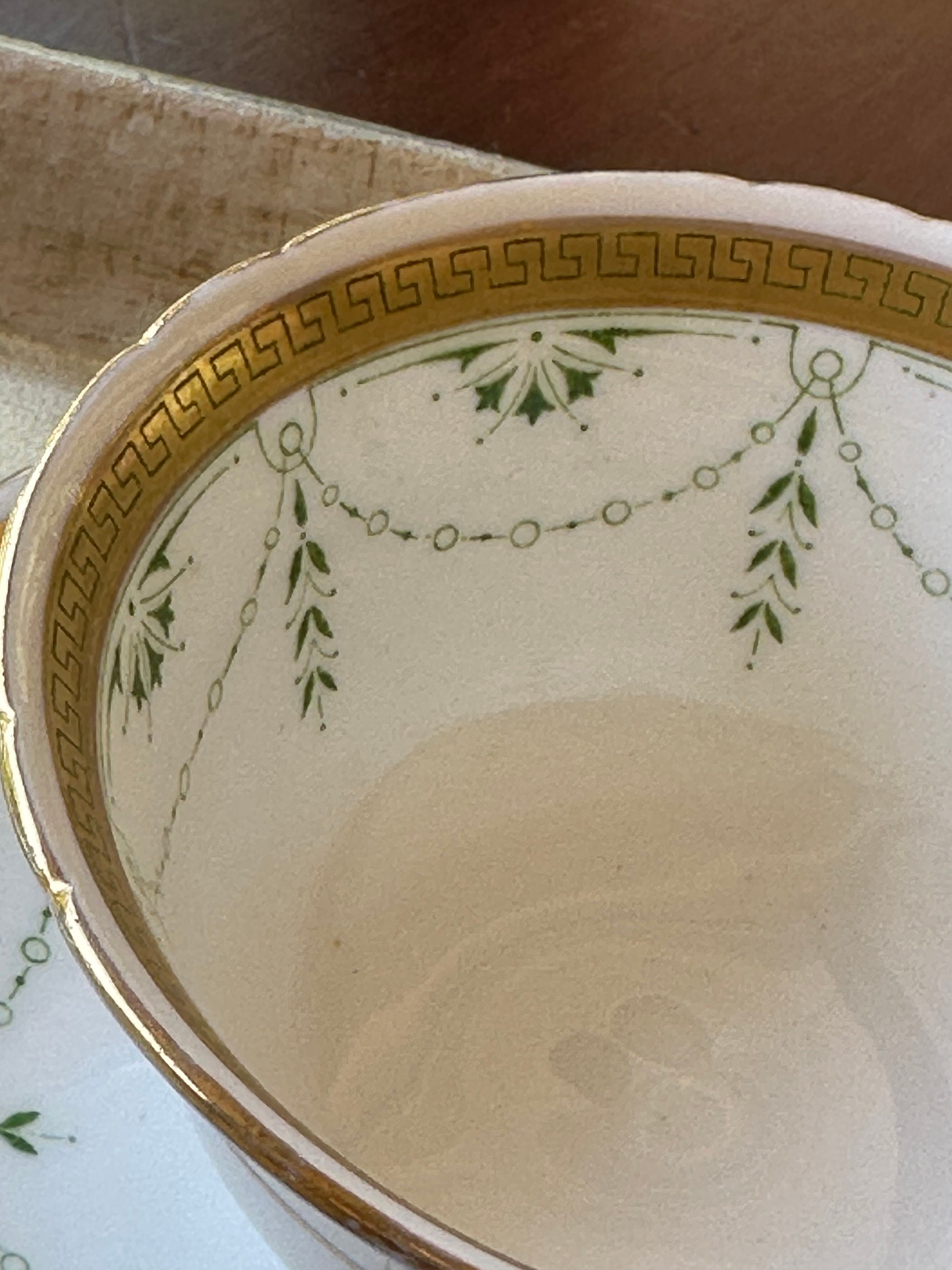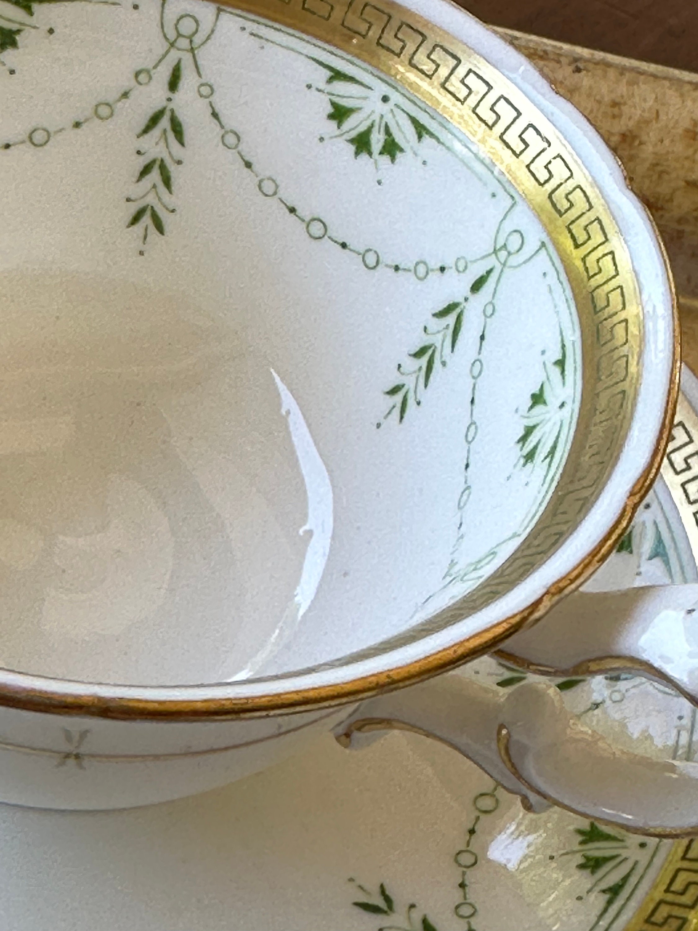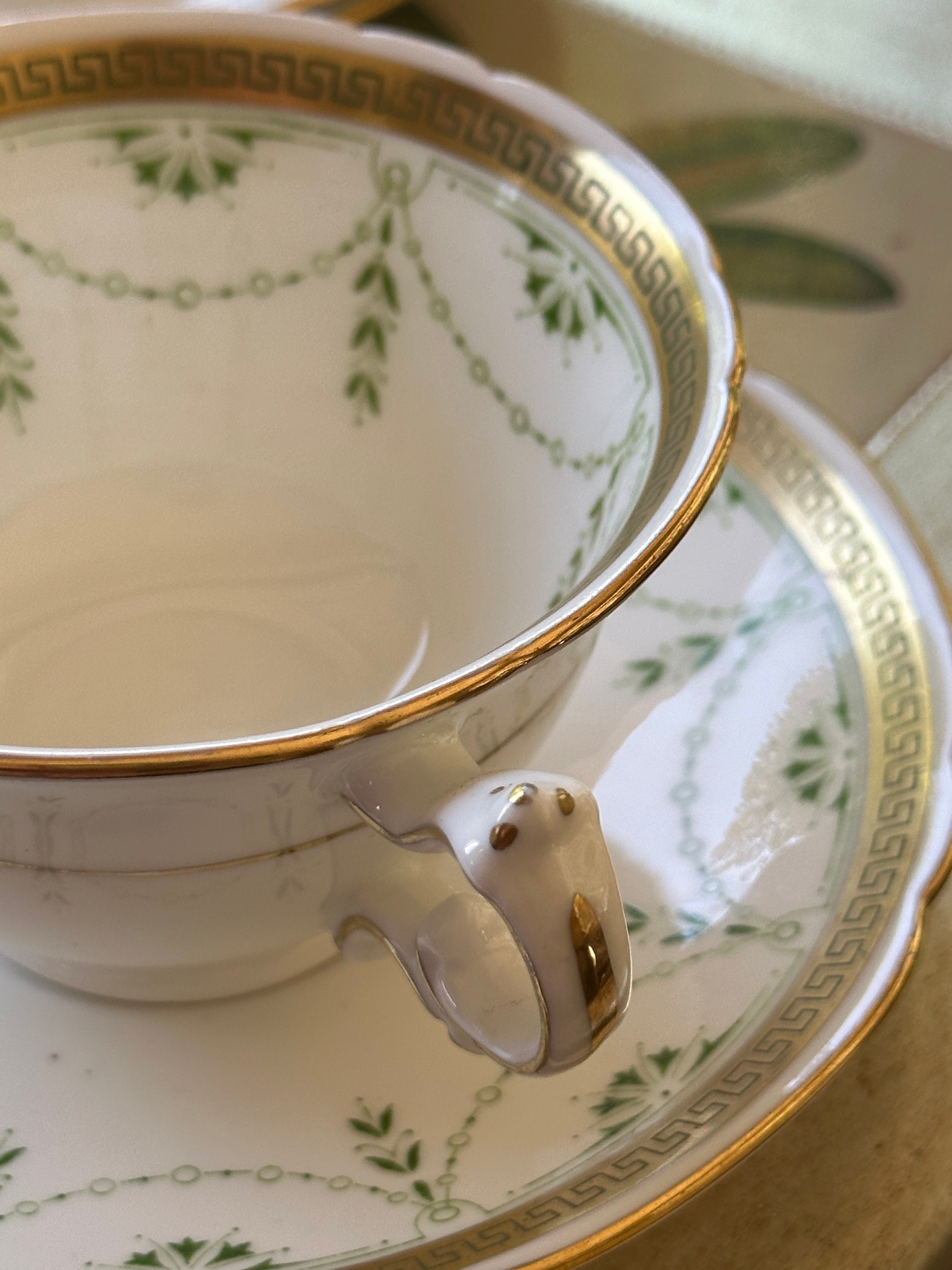 There is a skillful wide gilded band of the Greek key at the rim of every piece.