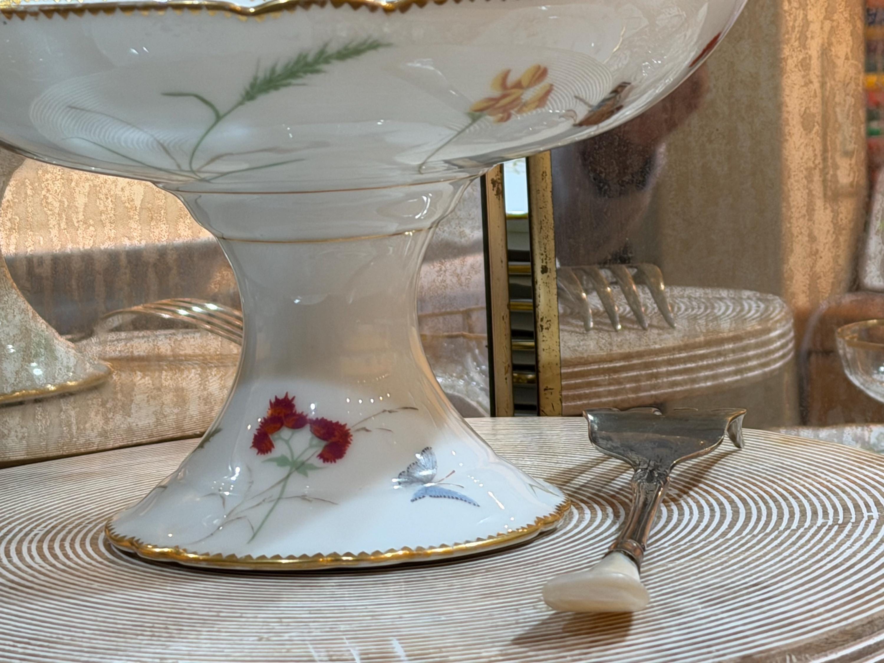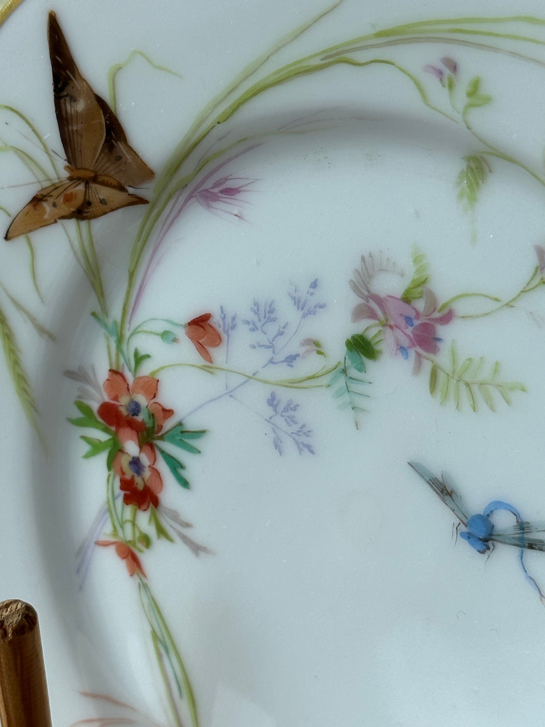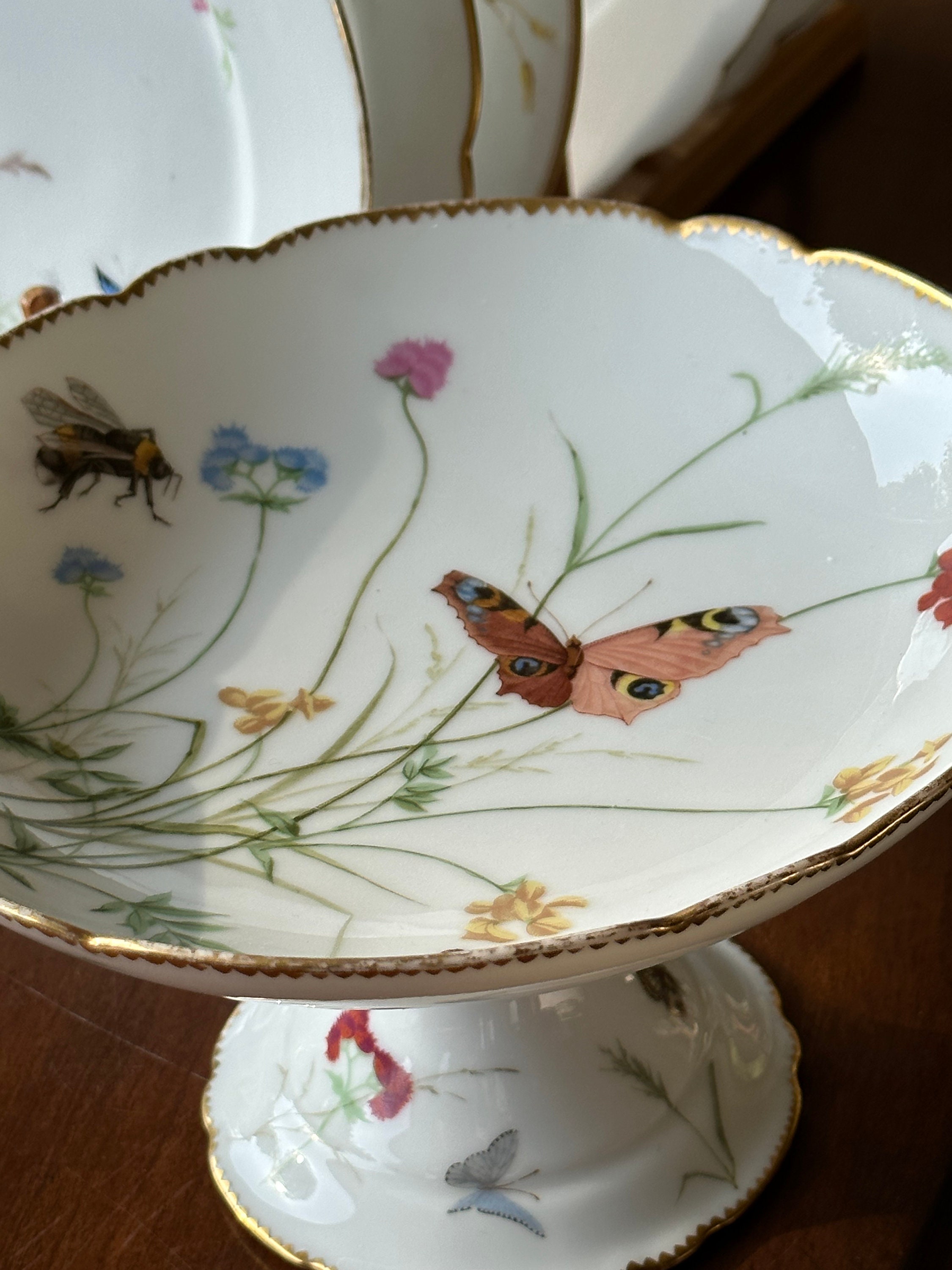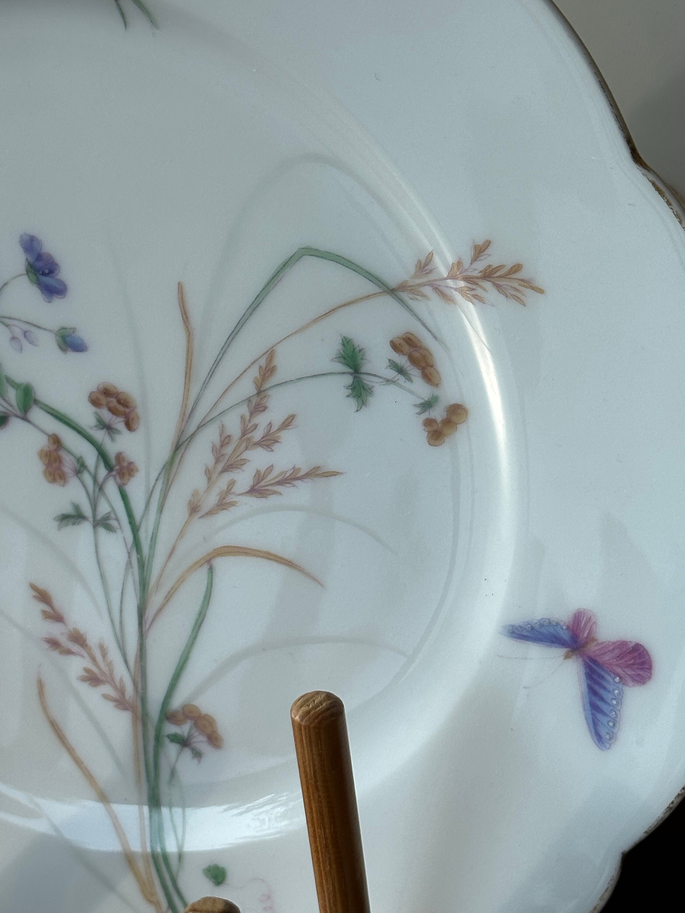 This elegant 7-piece French Old Paris dessert set is skillfully hand-painted with floral motifs, butterflies, and bees.