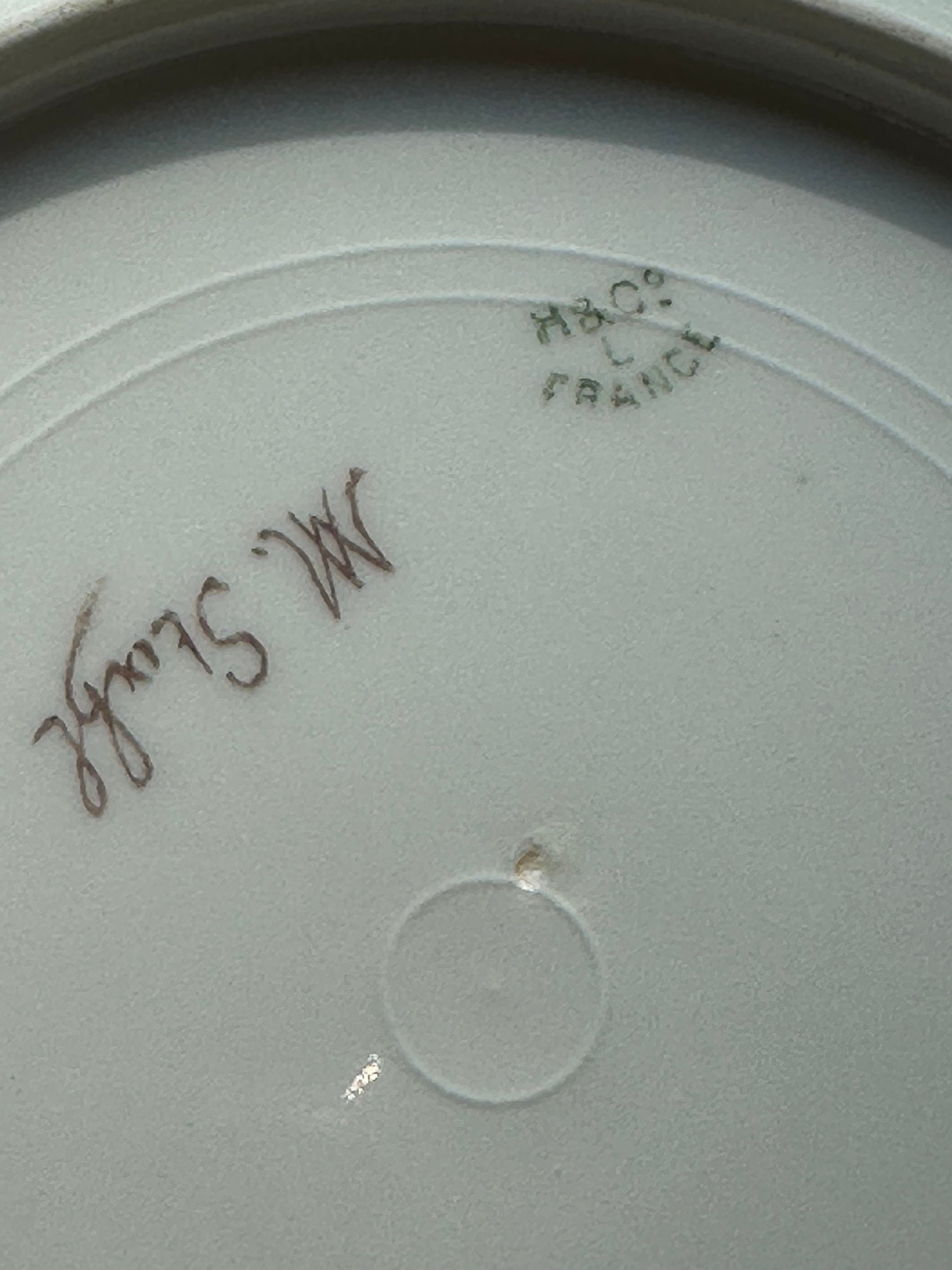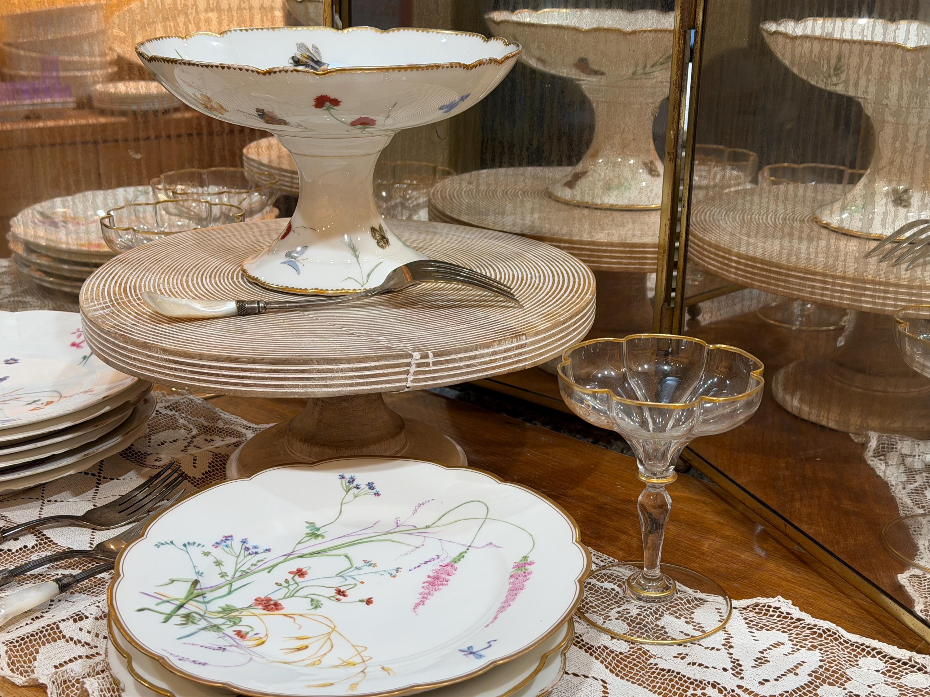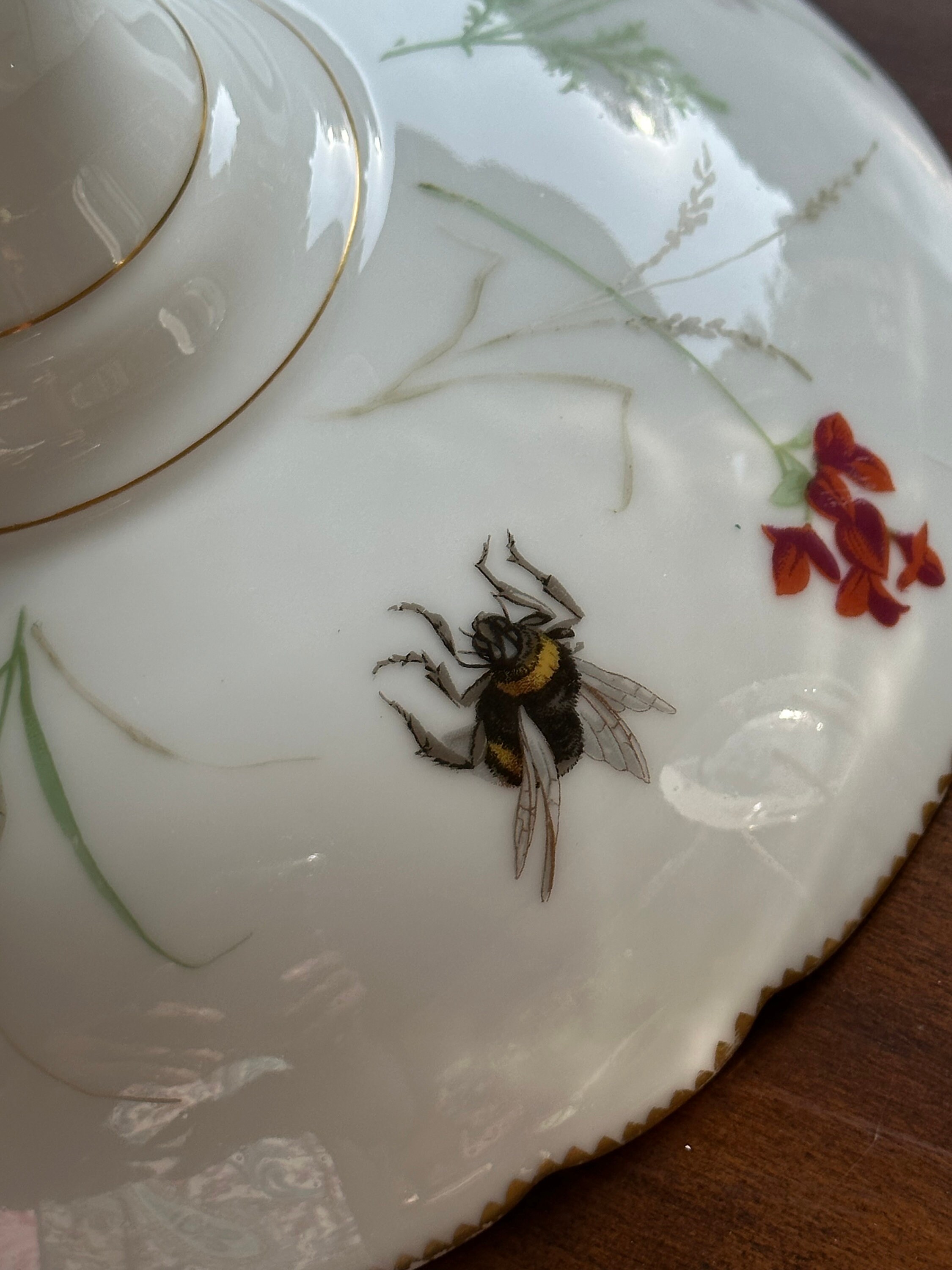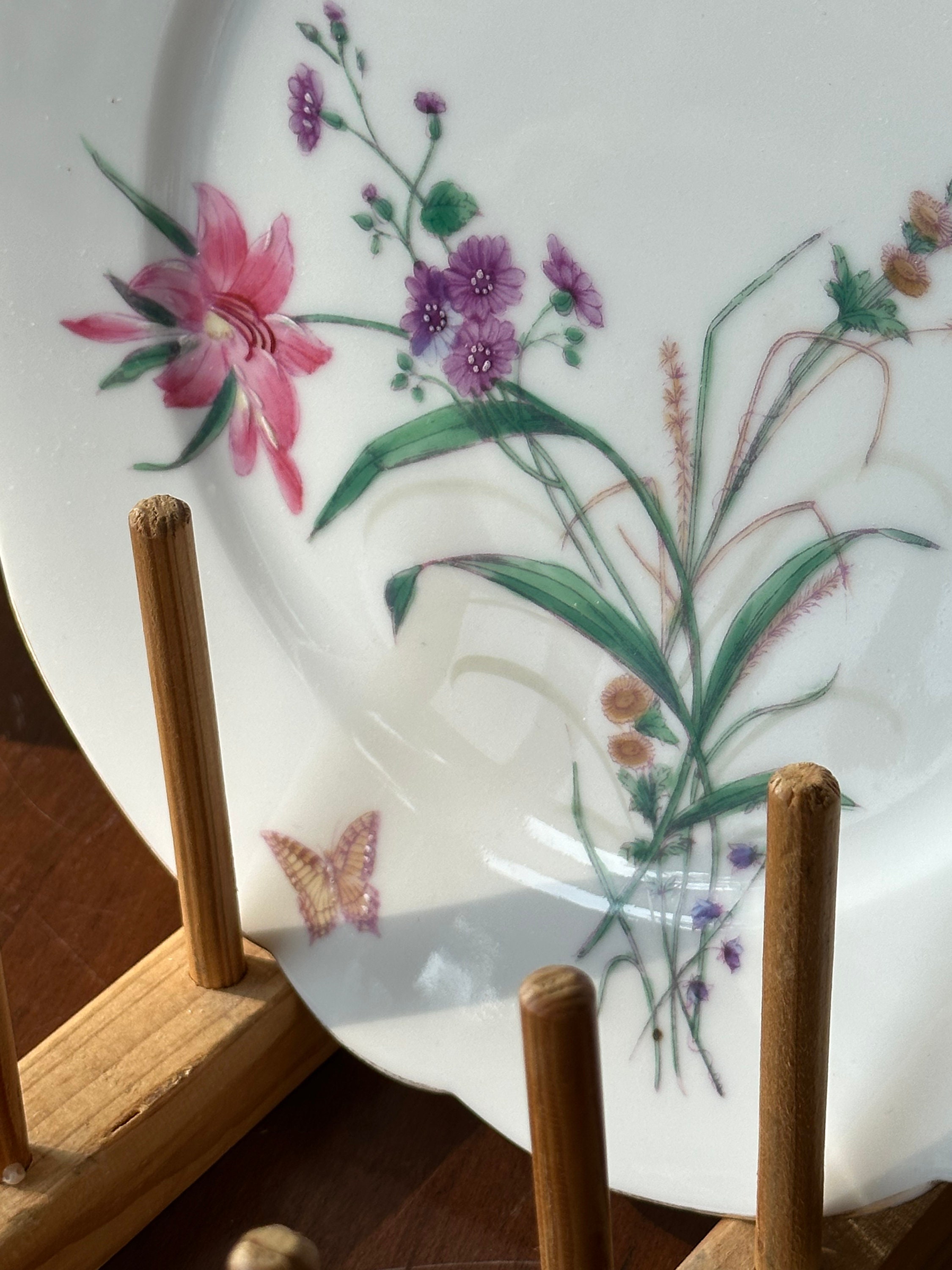 This elegant 7-piece French Old Paris dessert set is skillfully hand-painted with floral motifs, butterflies, and bees.