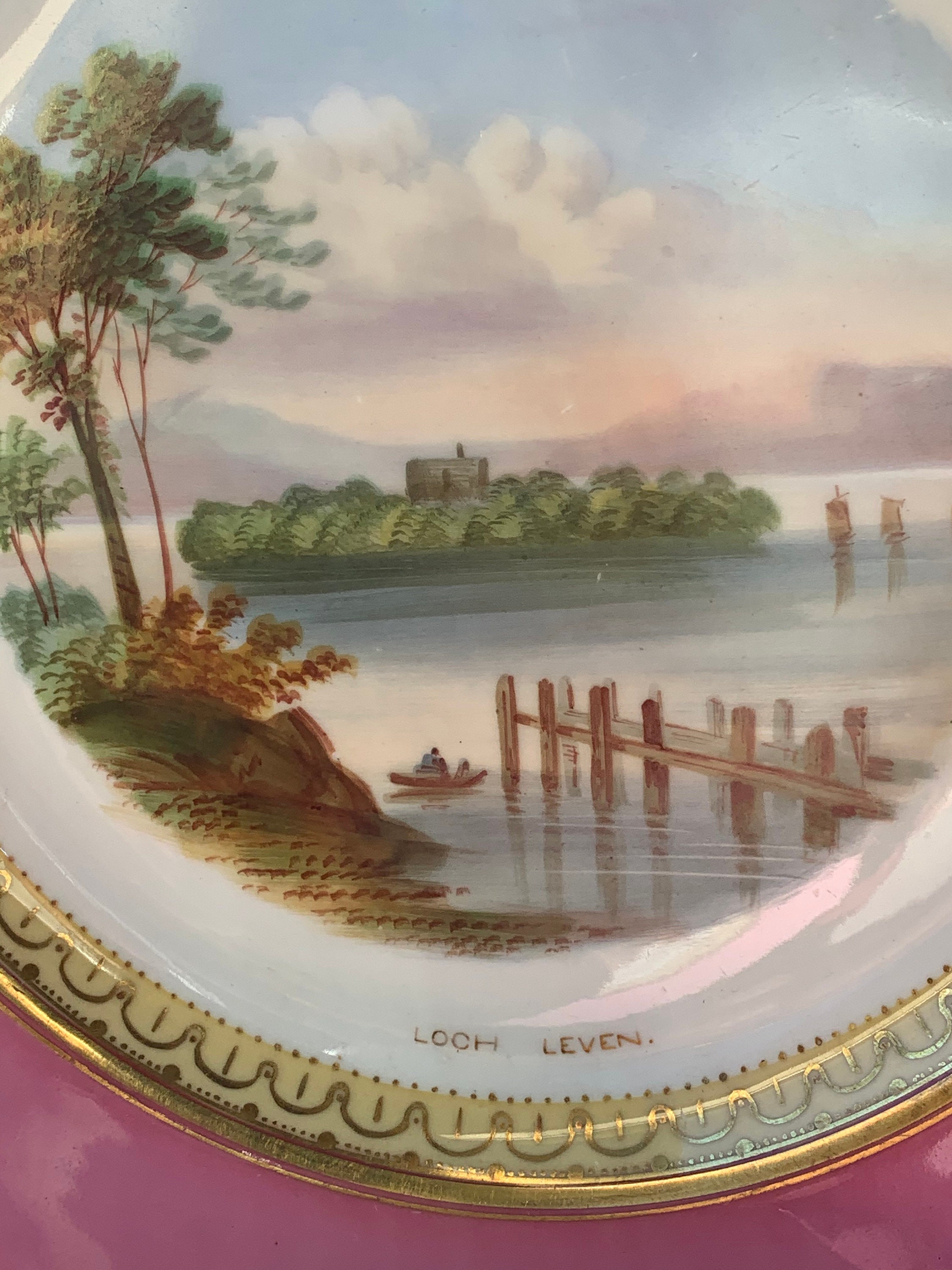 The Scottish views on each plate are "Loch Leven and "Loch Linlithgow Palace". The compote shows "Loch Long".