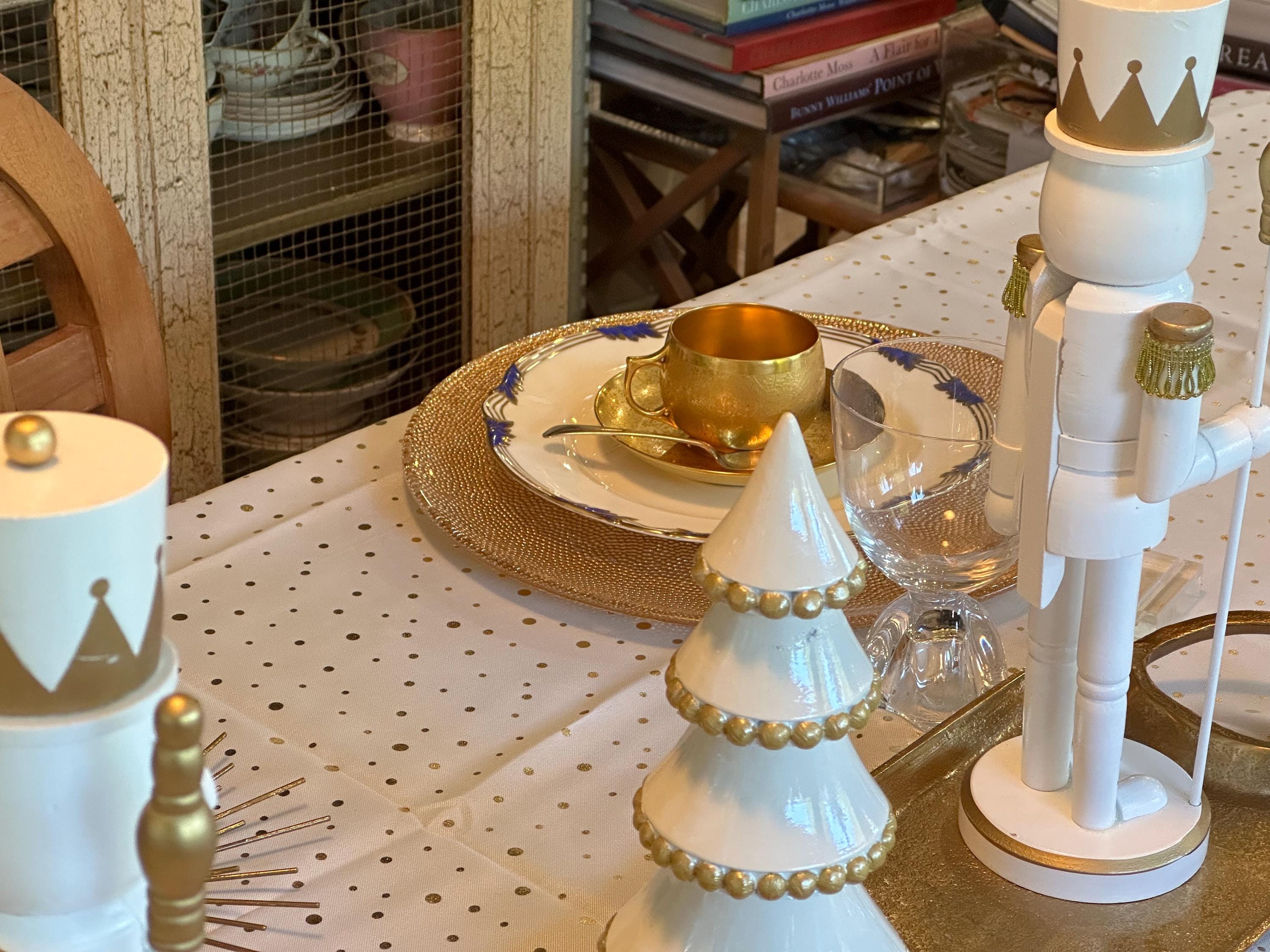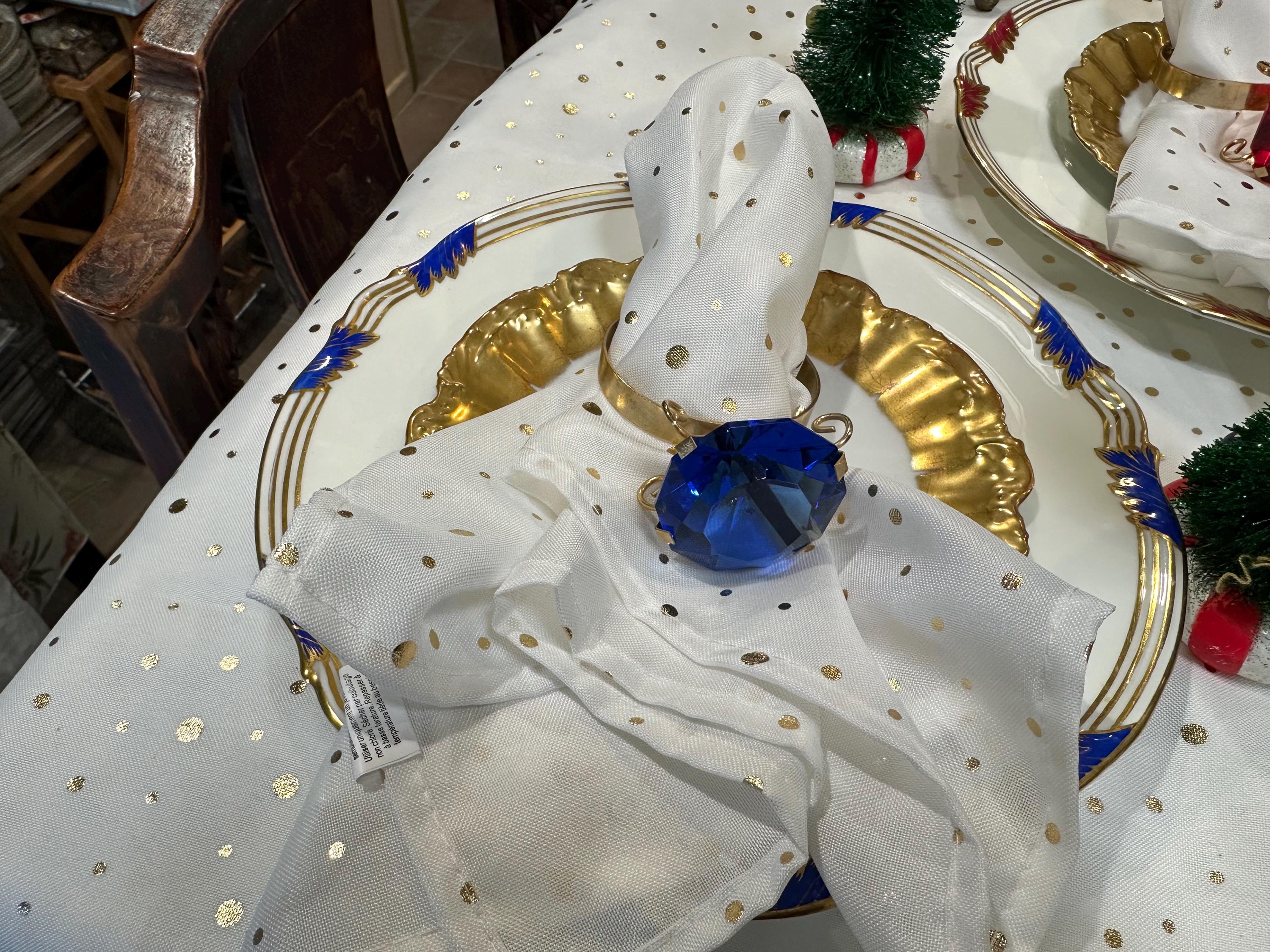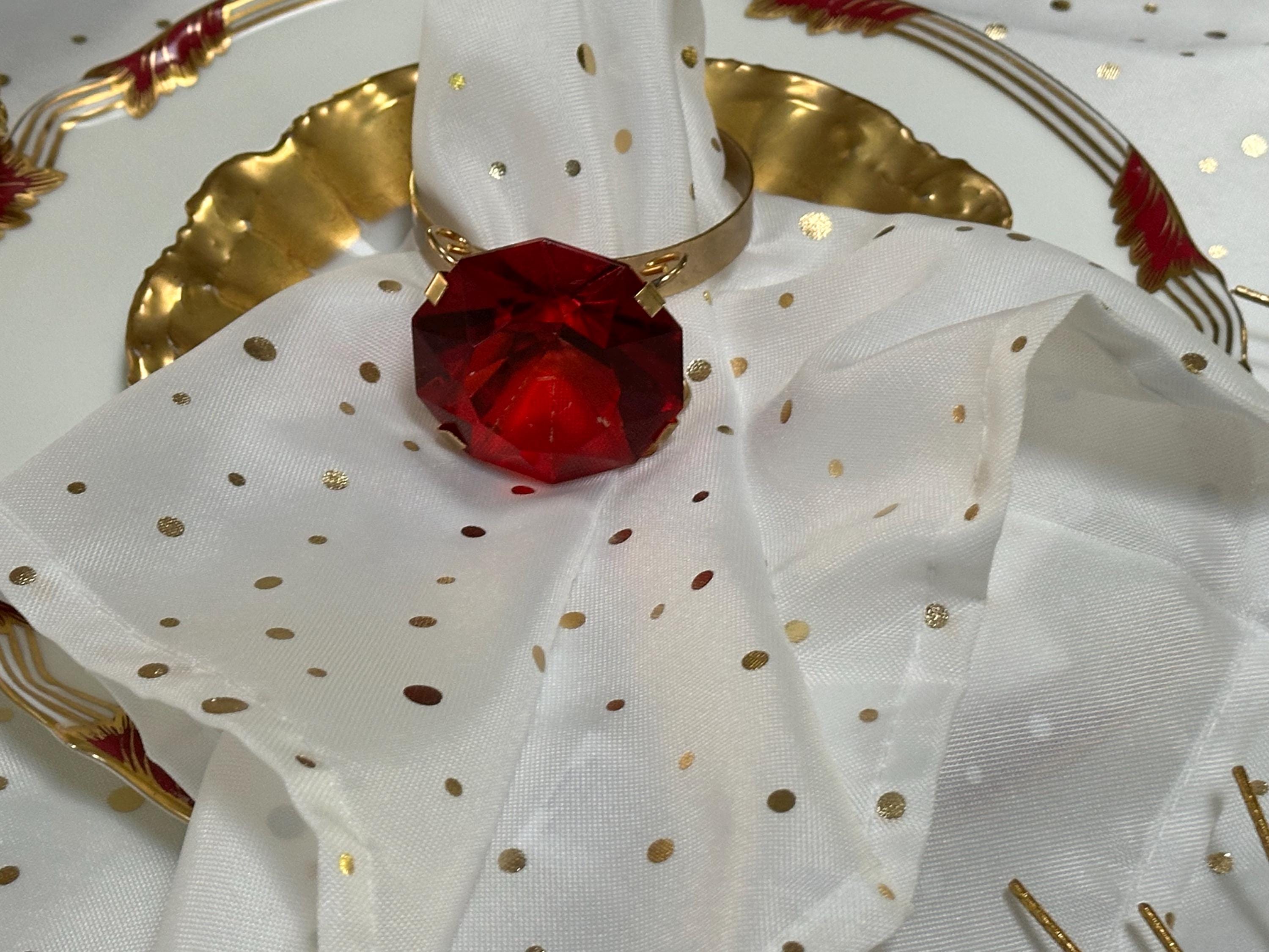 The napkin rings shown in the display are included in the listing.
