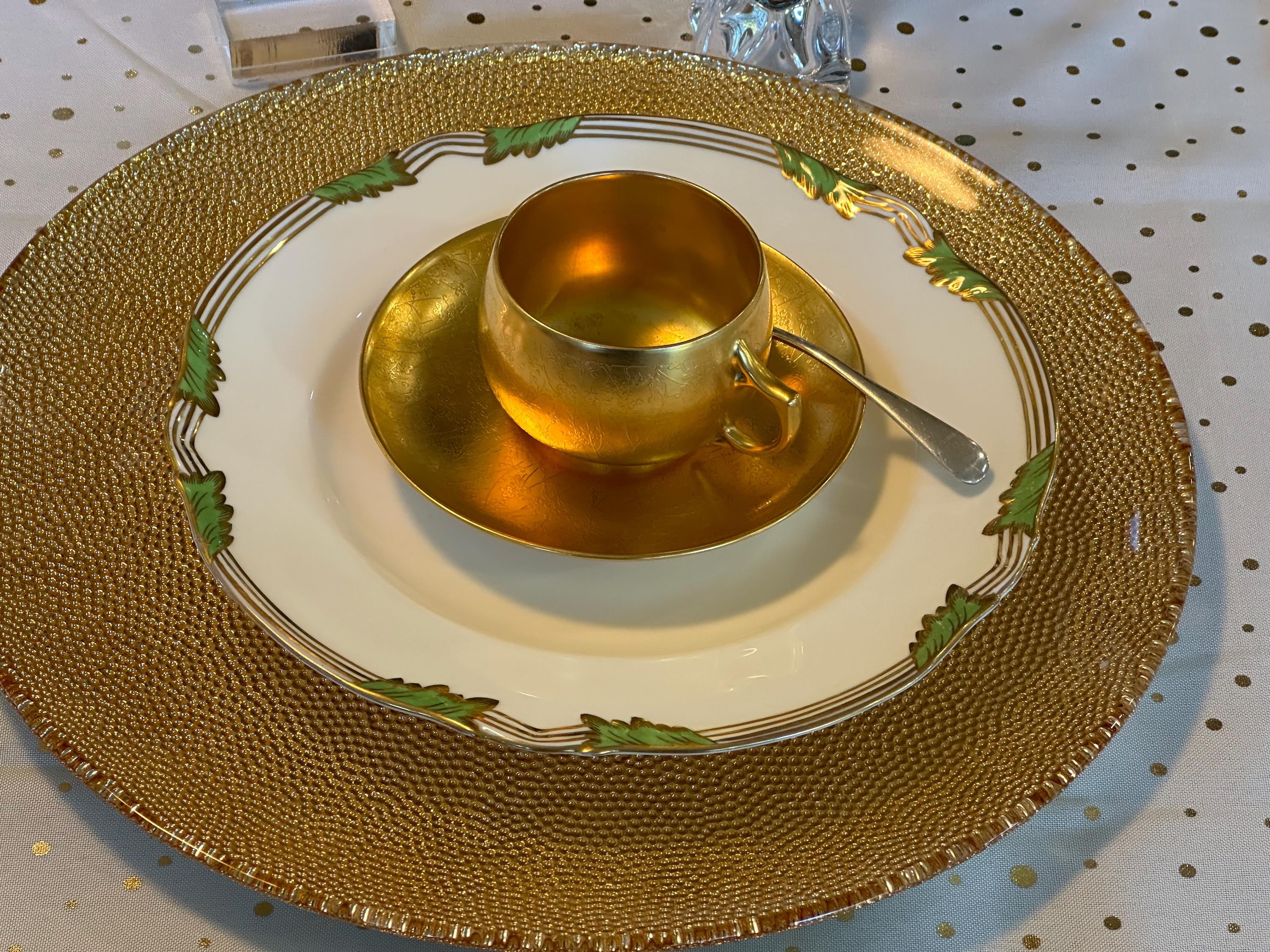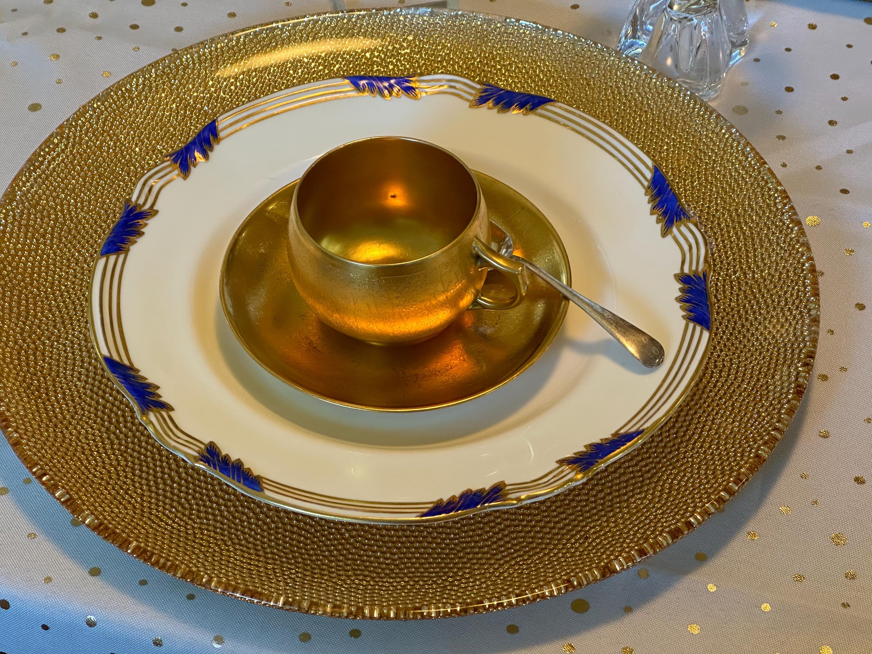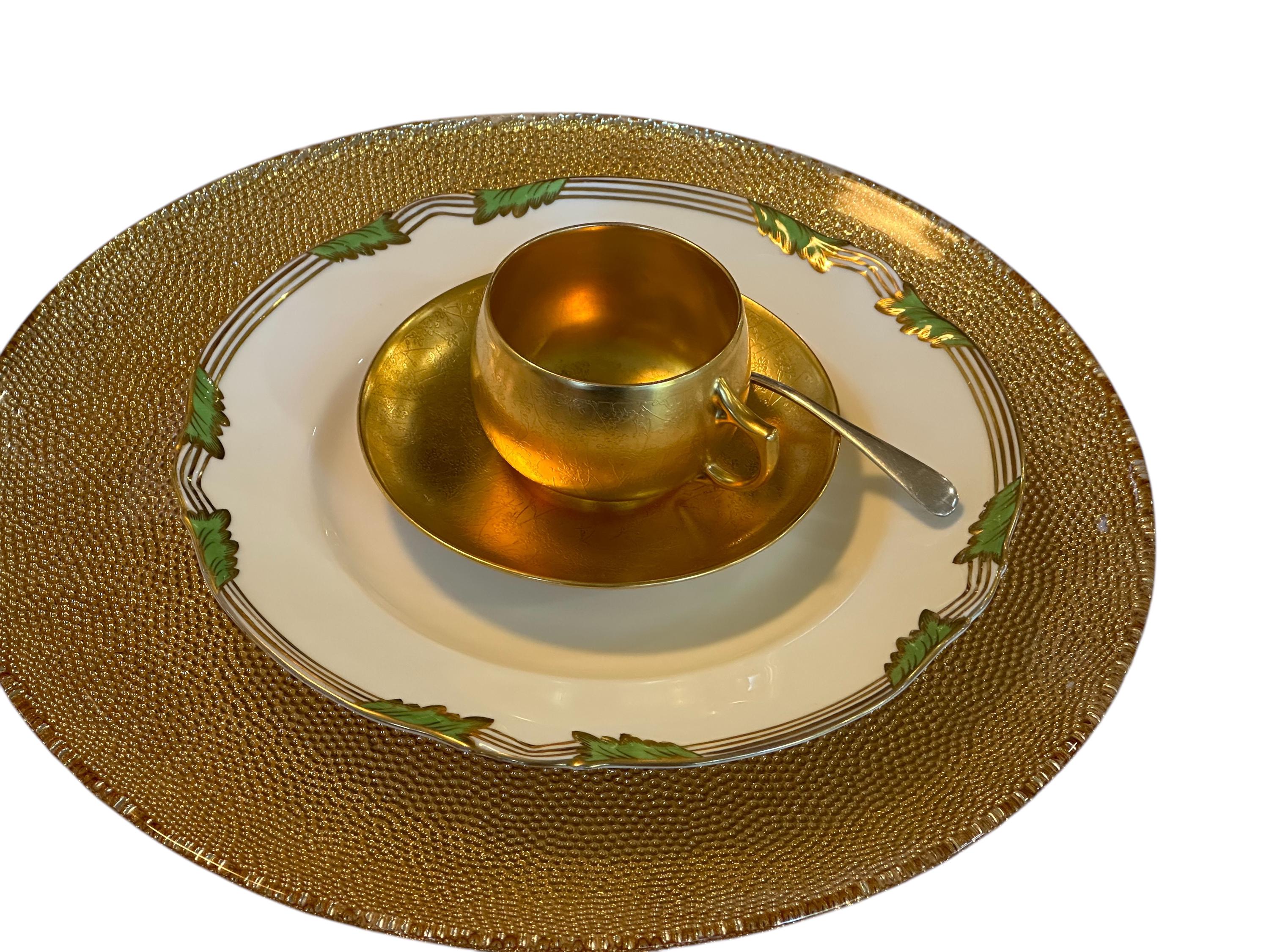 The rim design is completed with gold stripes and scalloping.