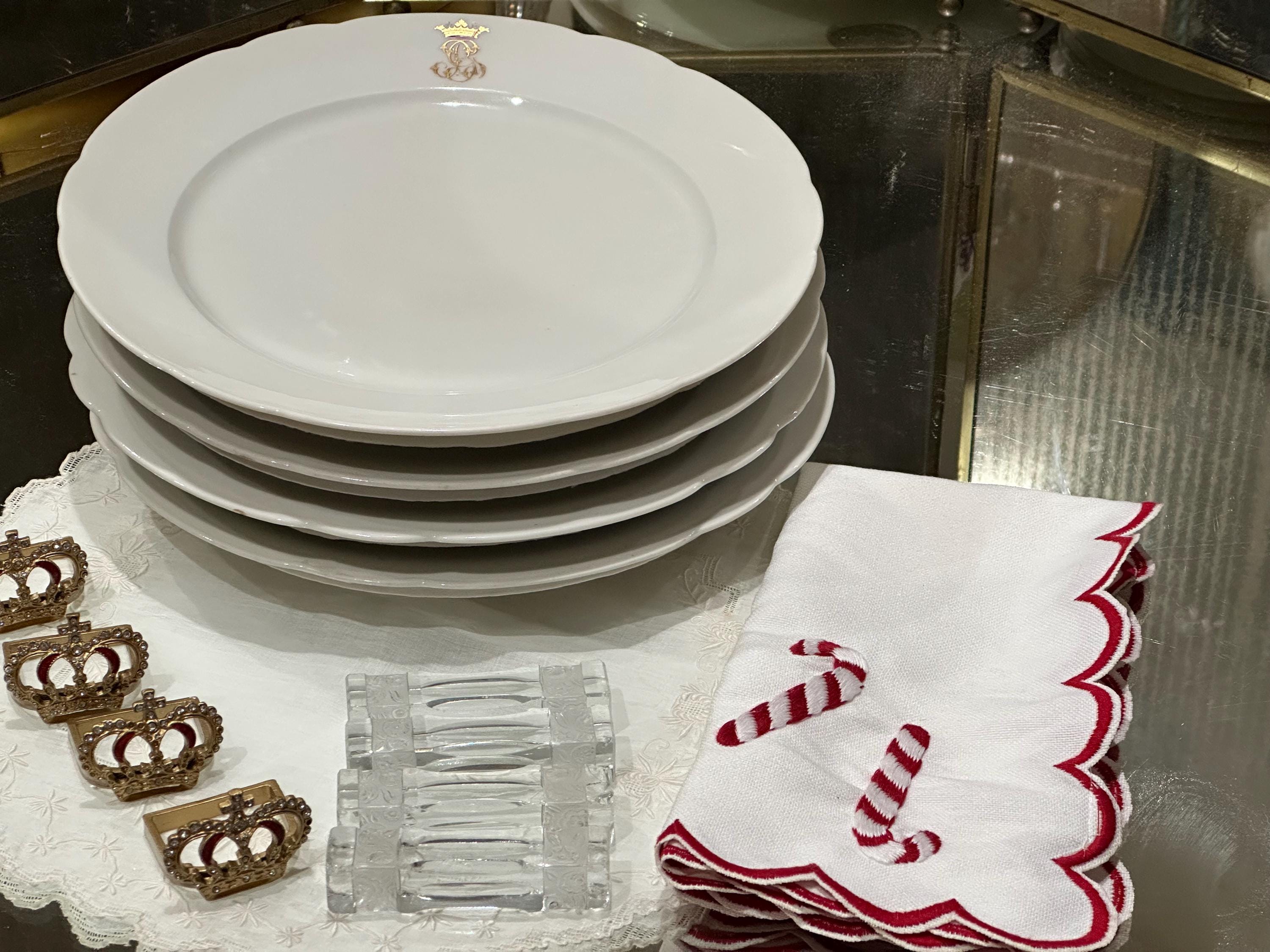 Included in your purchase are four each of complementary napkin rings, crystal knife rests and Christmas napkins