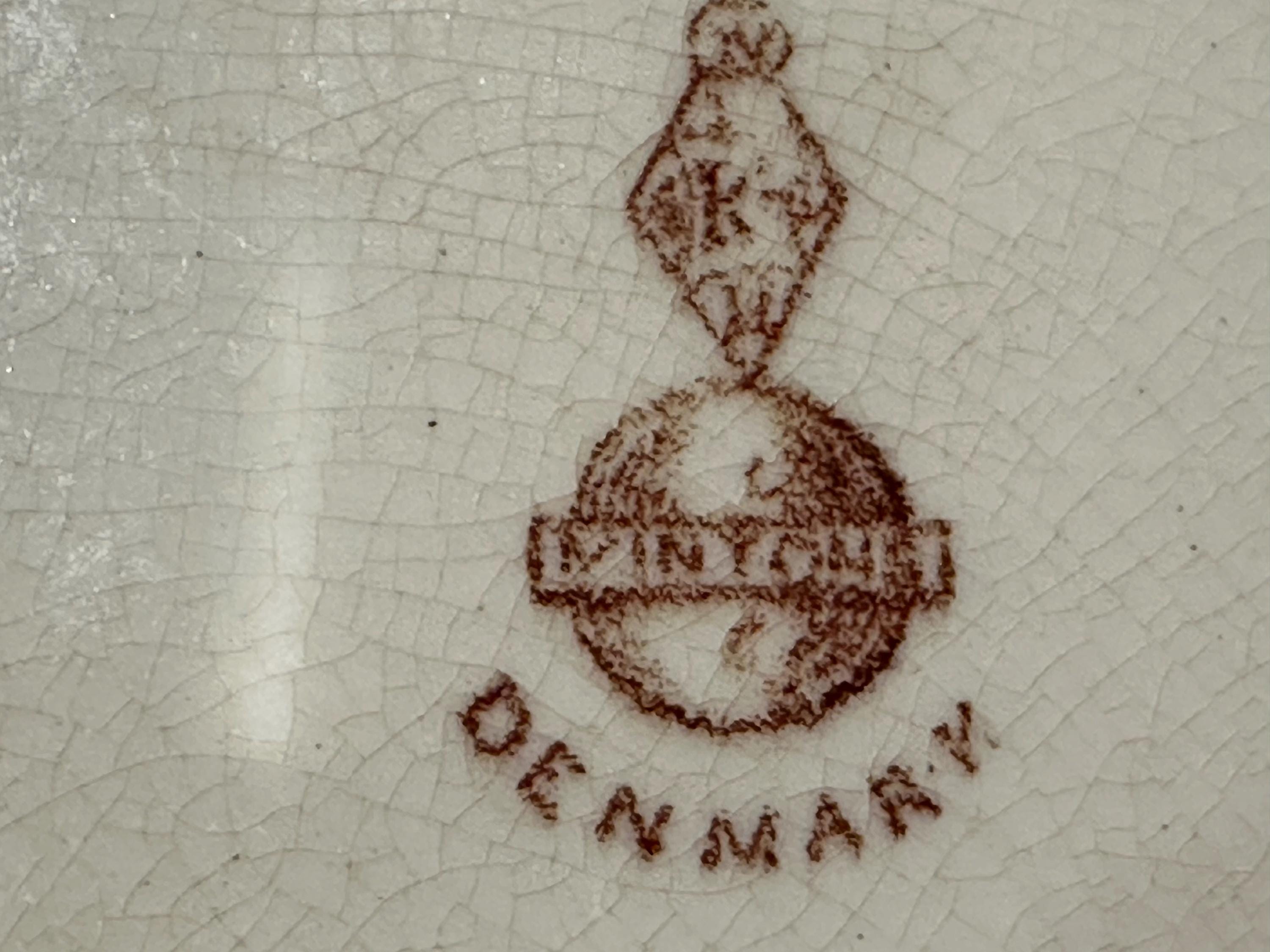 The set is in fair condition for its age, showing no chips; however, there are at least two cracks, some crazing, and discoloration on the back.