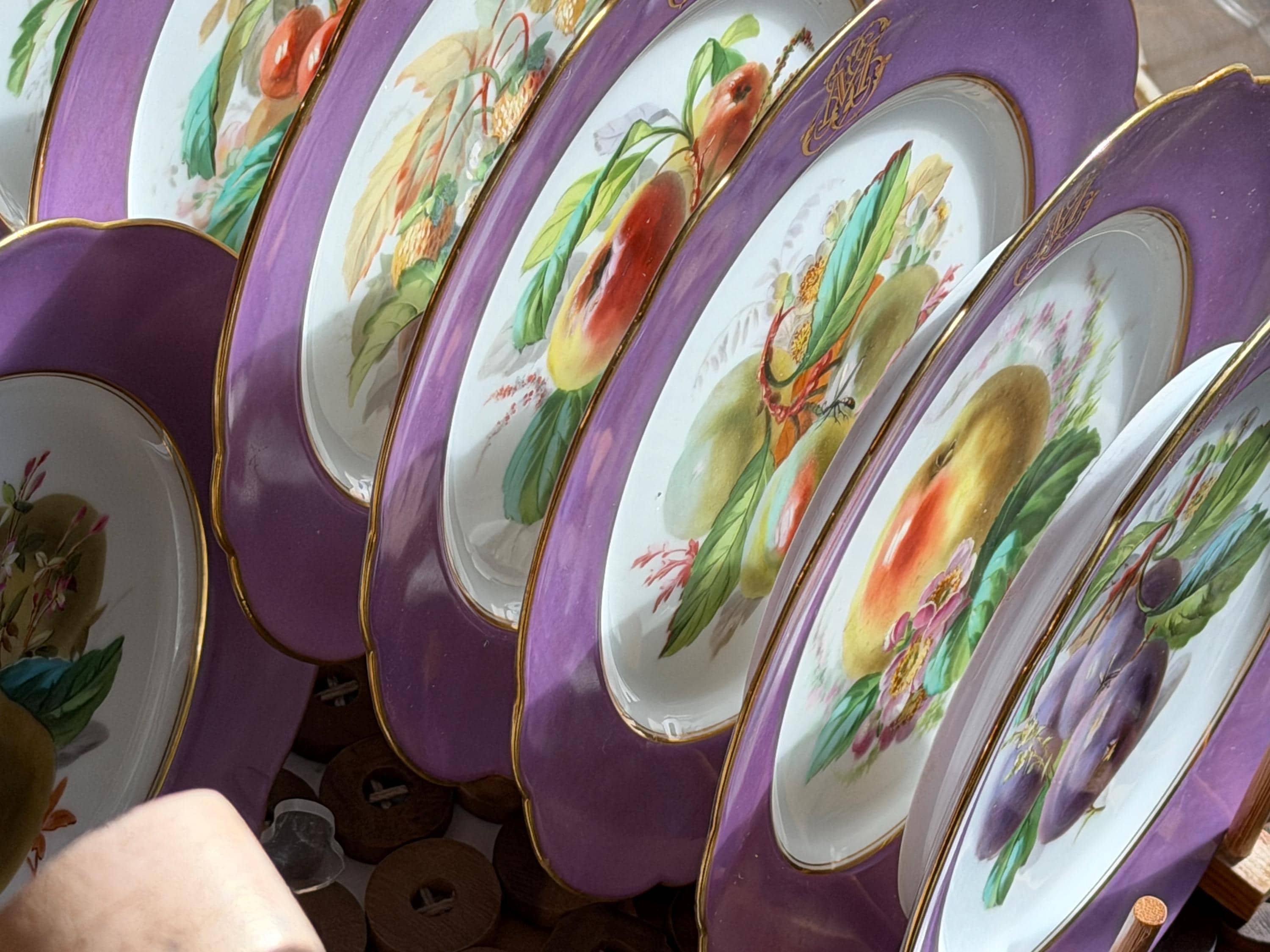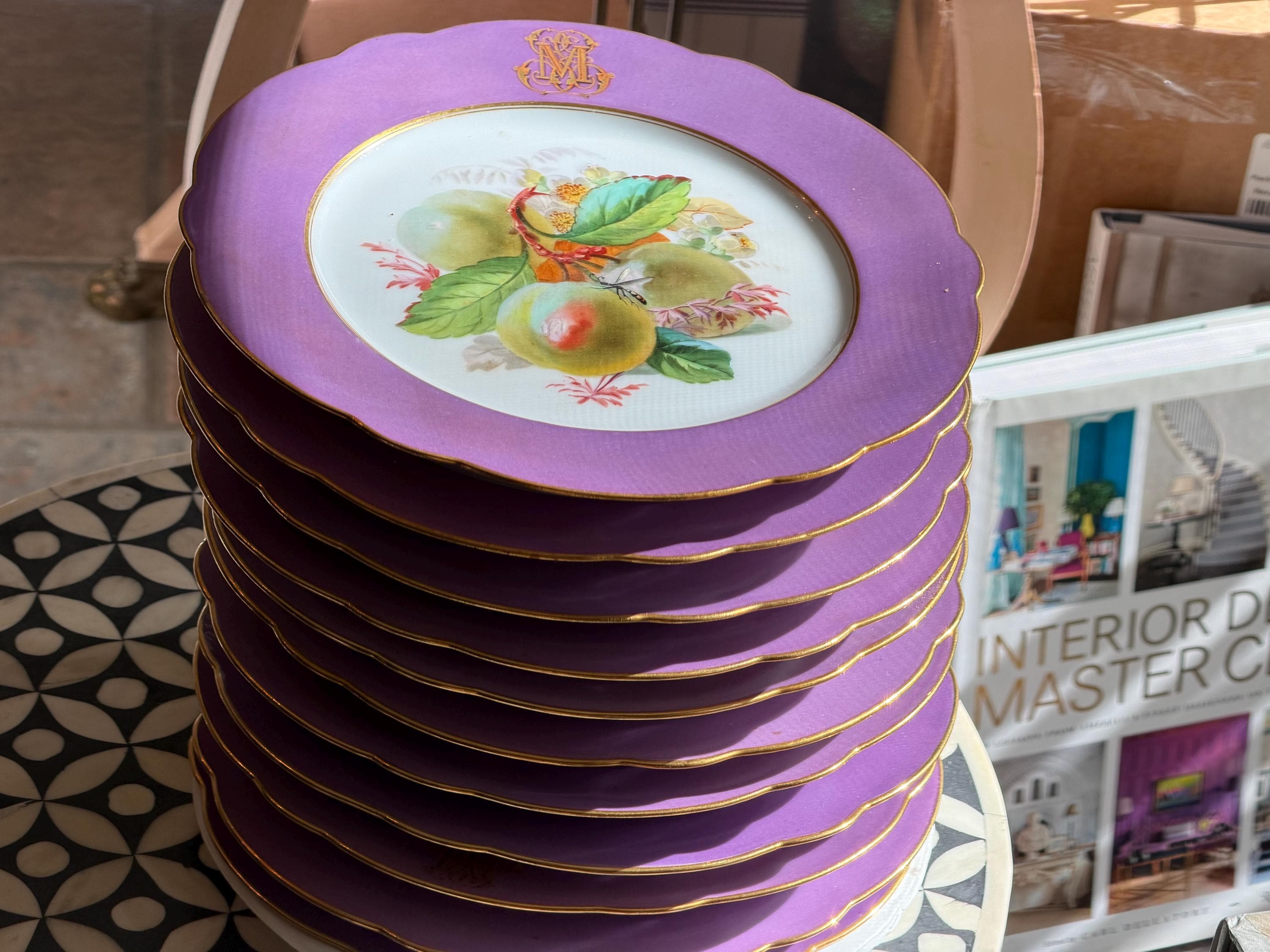 No chips or cracks. Only one plate shows some fading in the center monogram.