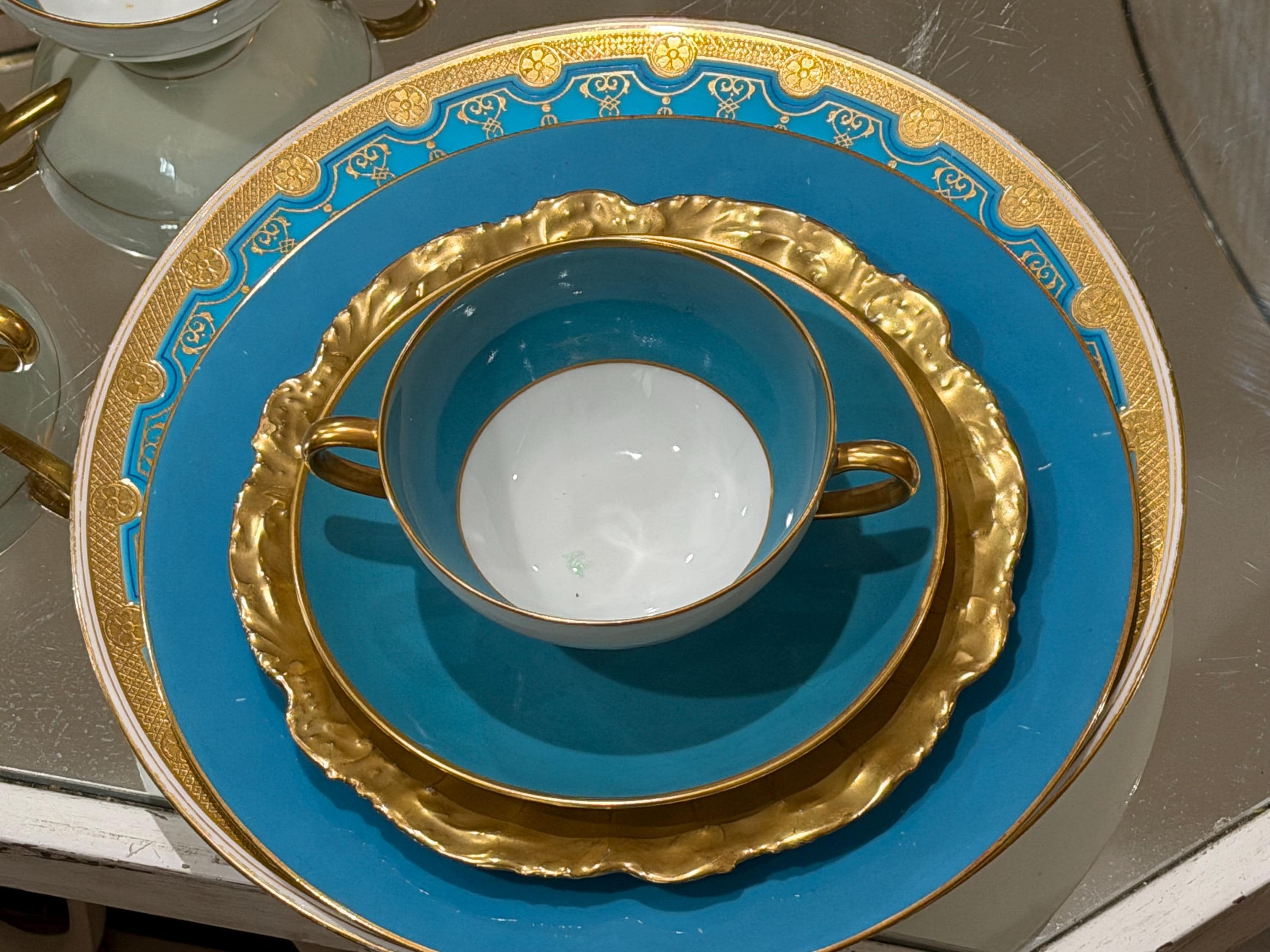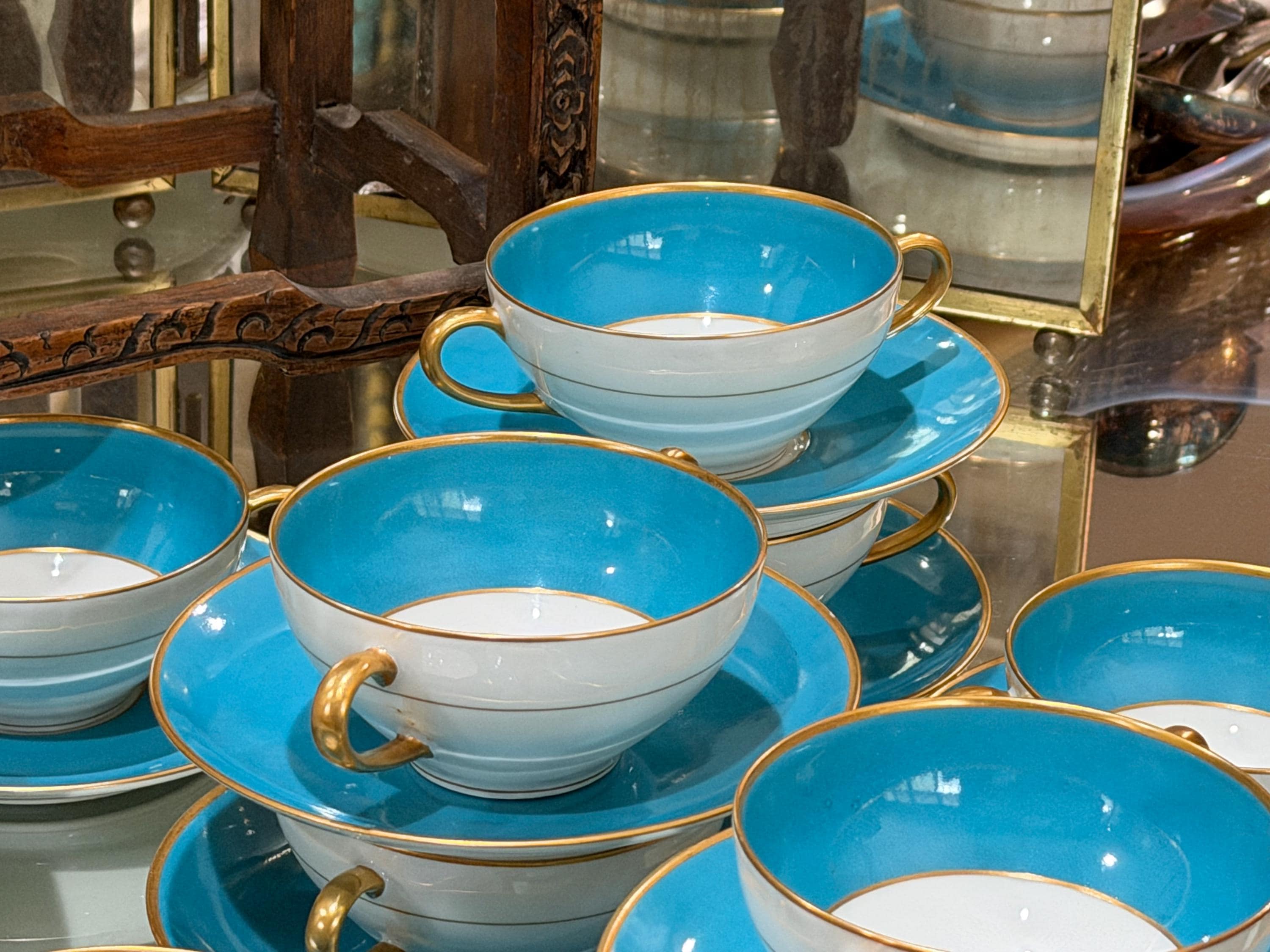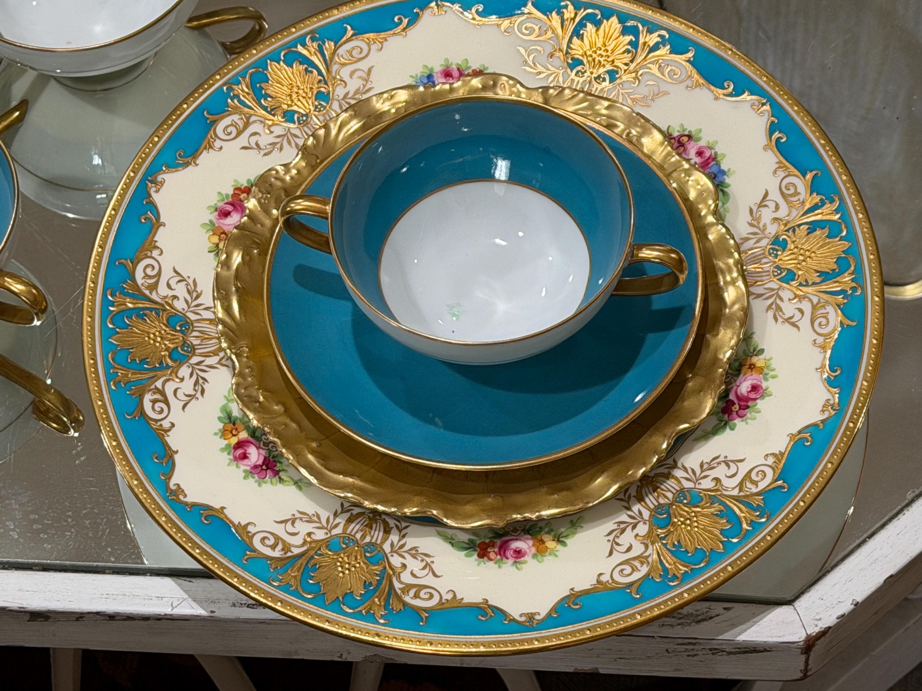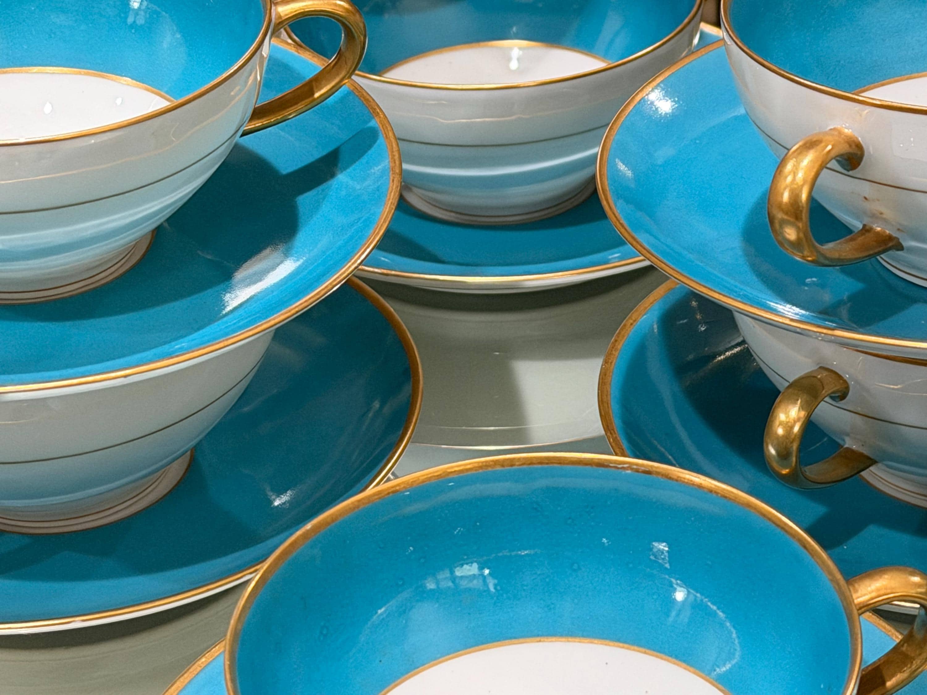 23 piece set of antique French Limoges cream soup bowls with matching saucers.