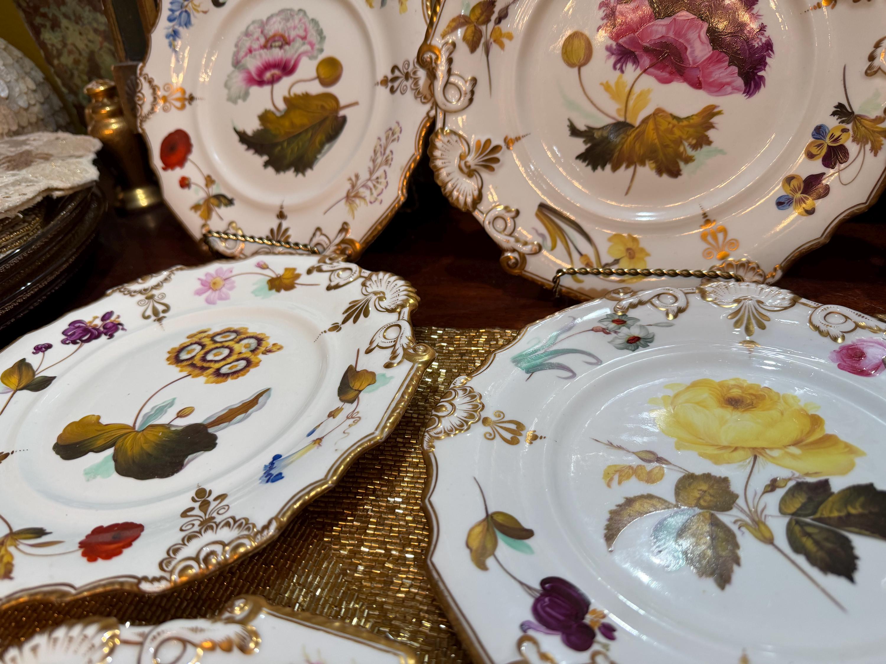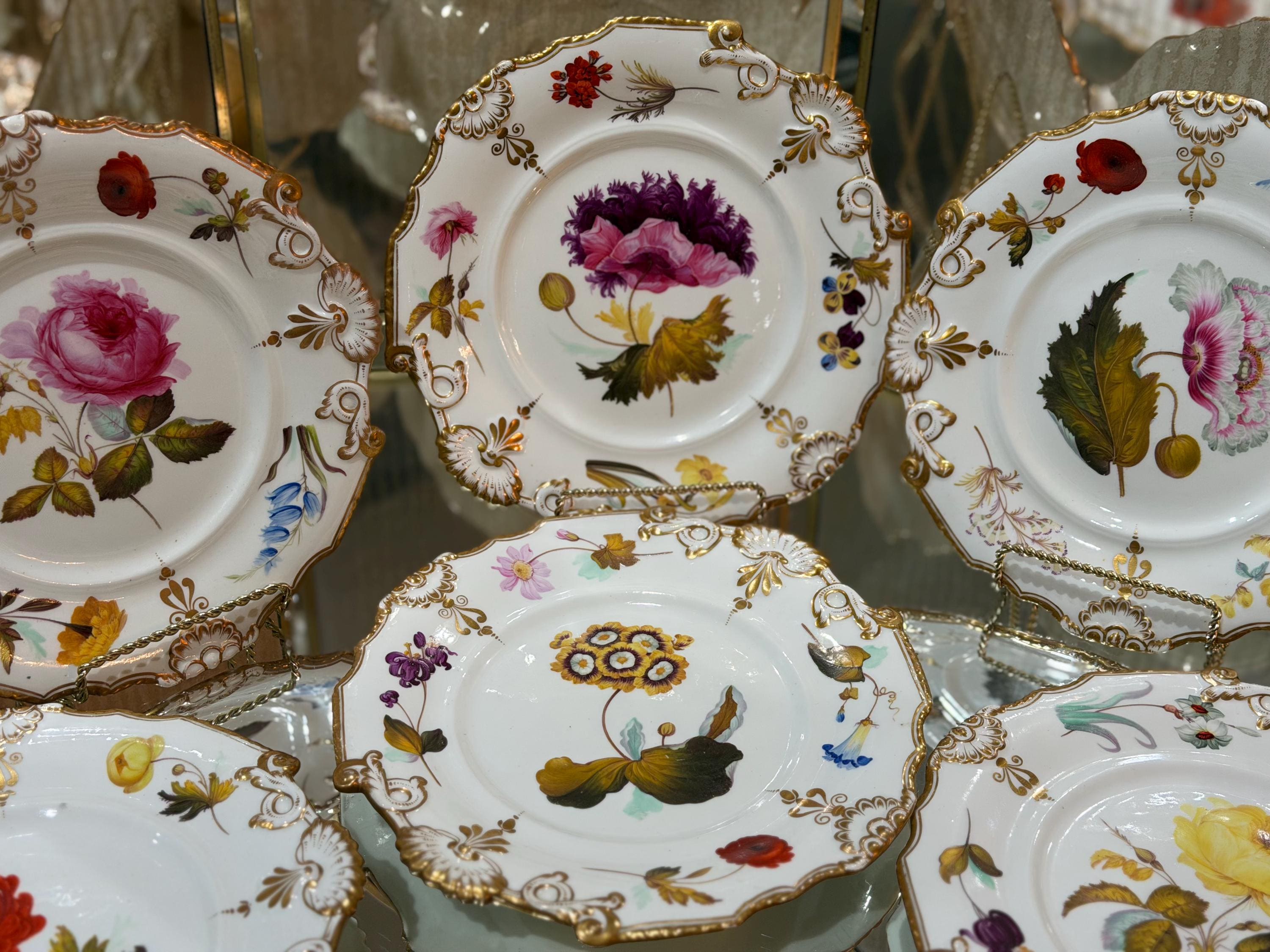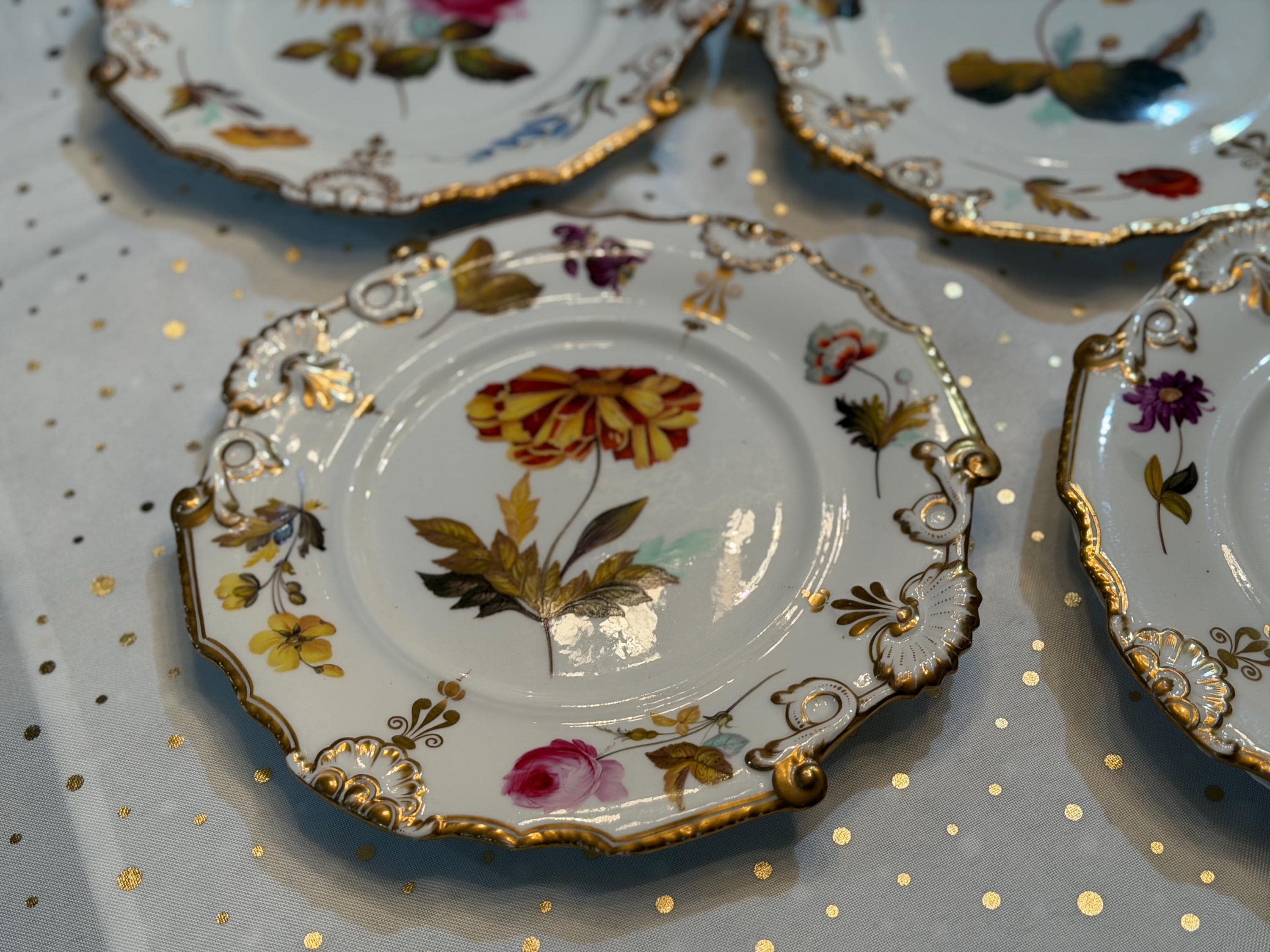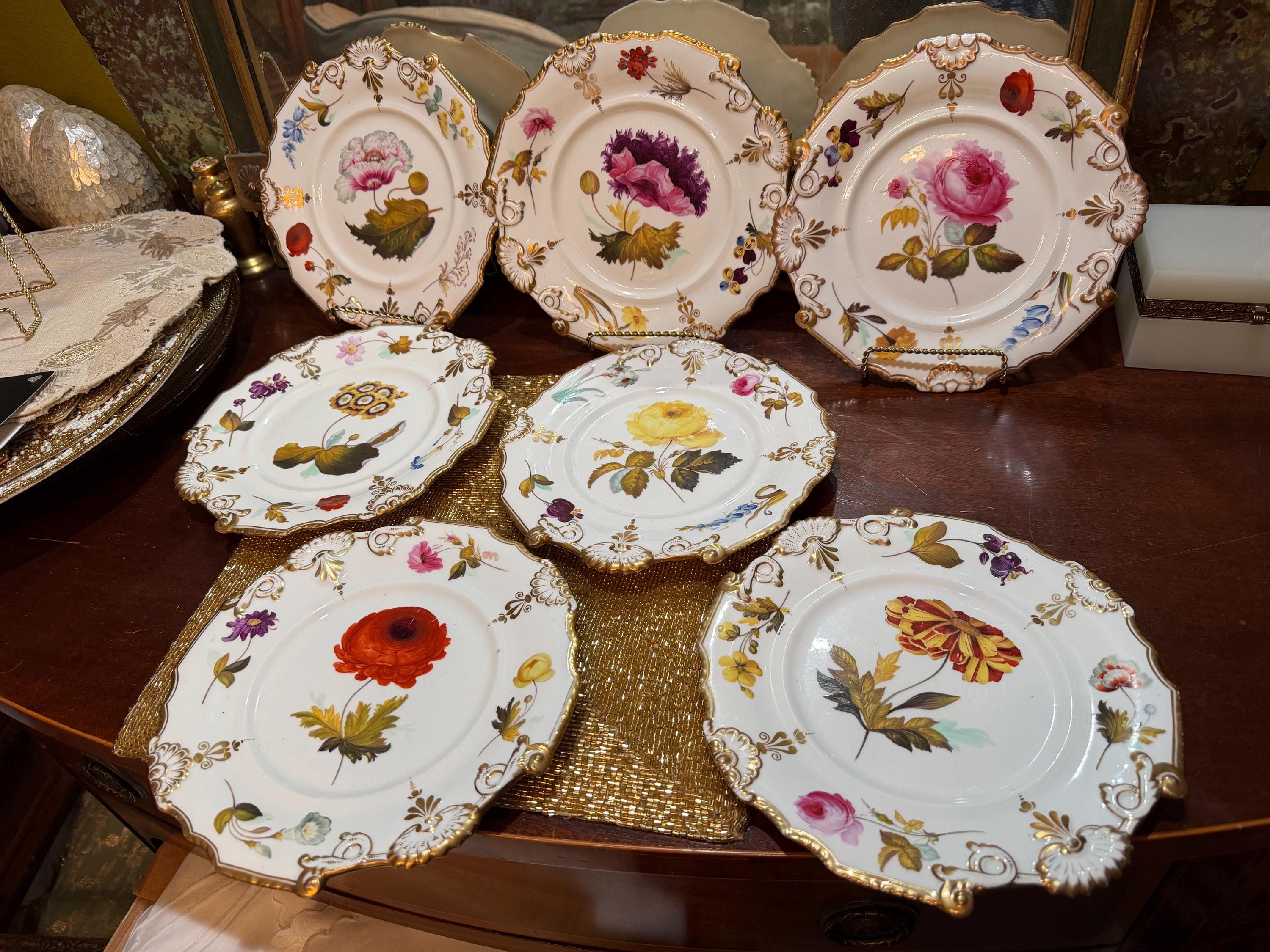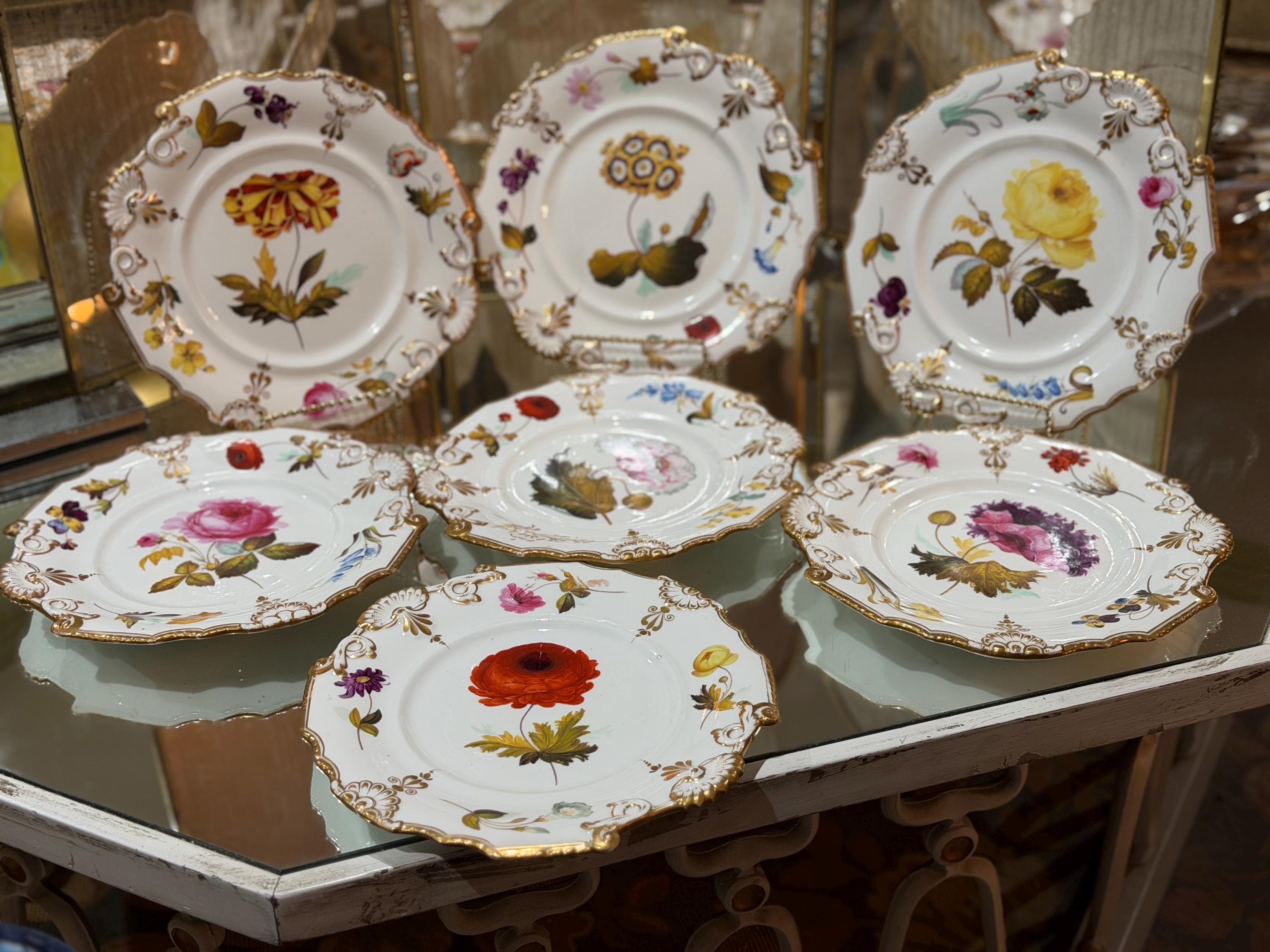 Offered is a spectacular, one-of-a-kind antique dessert set featuring seven dessert plates.