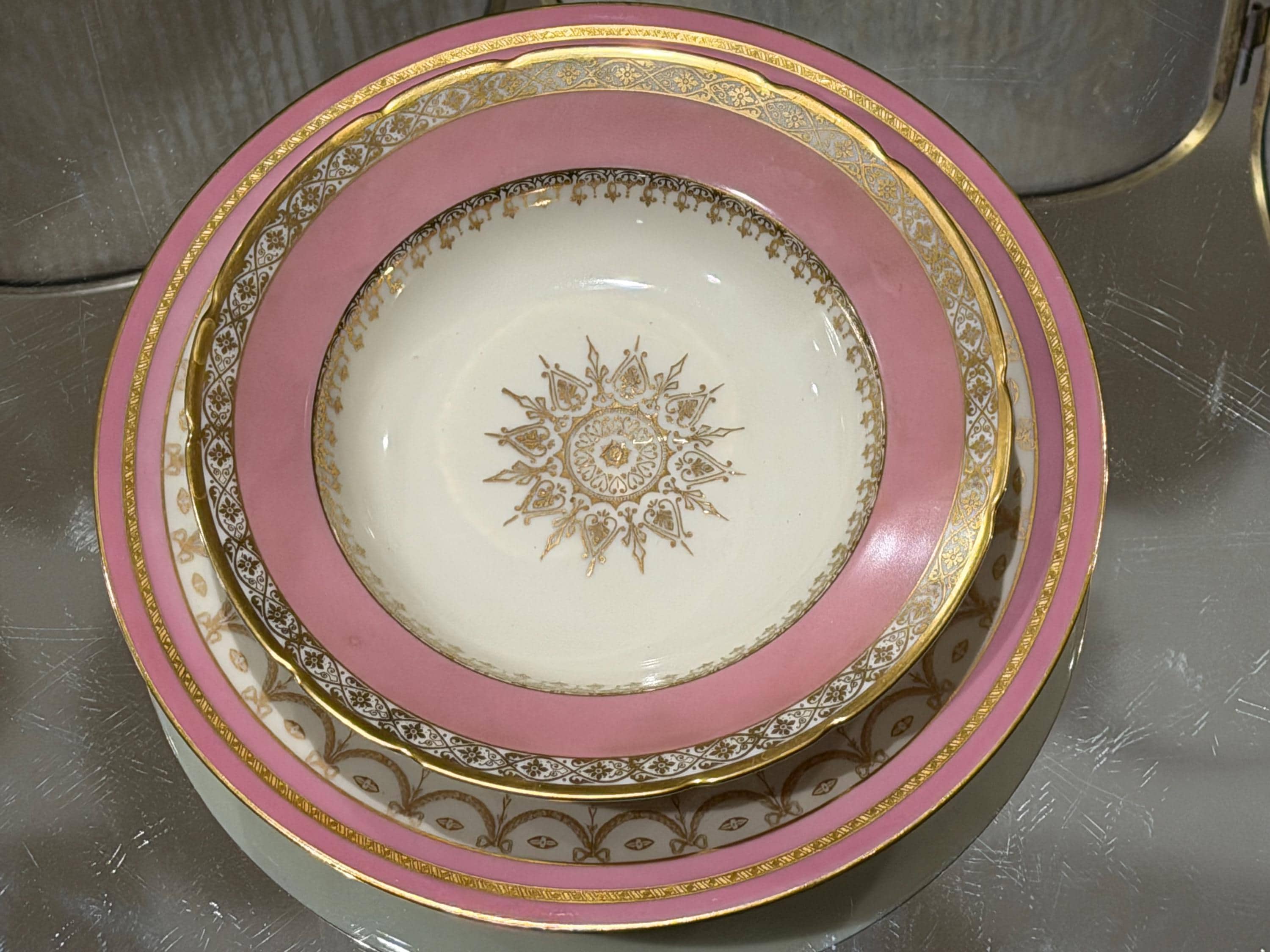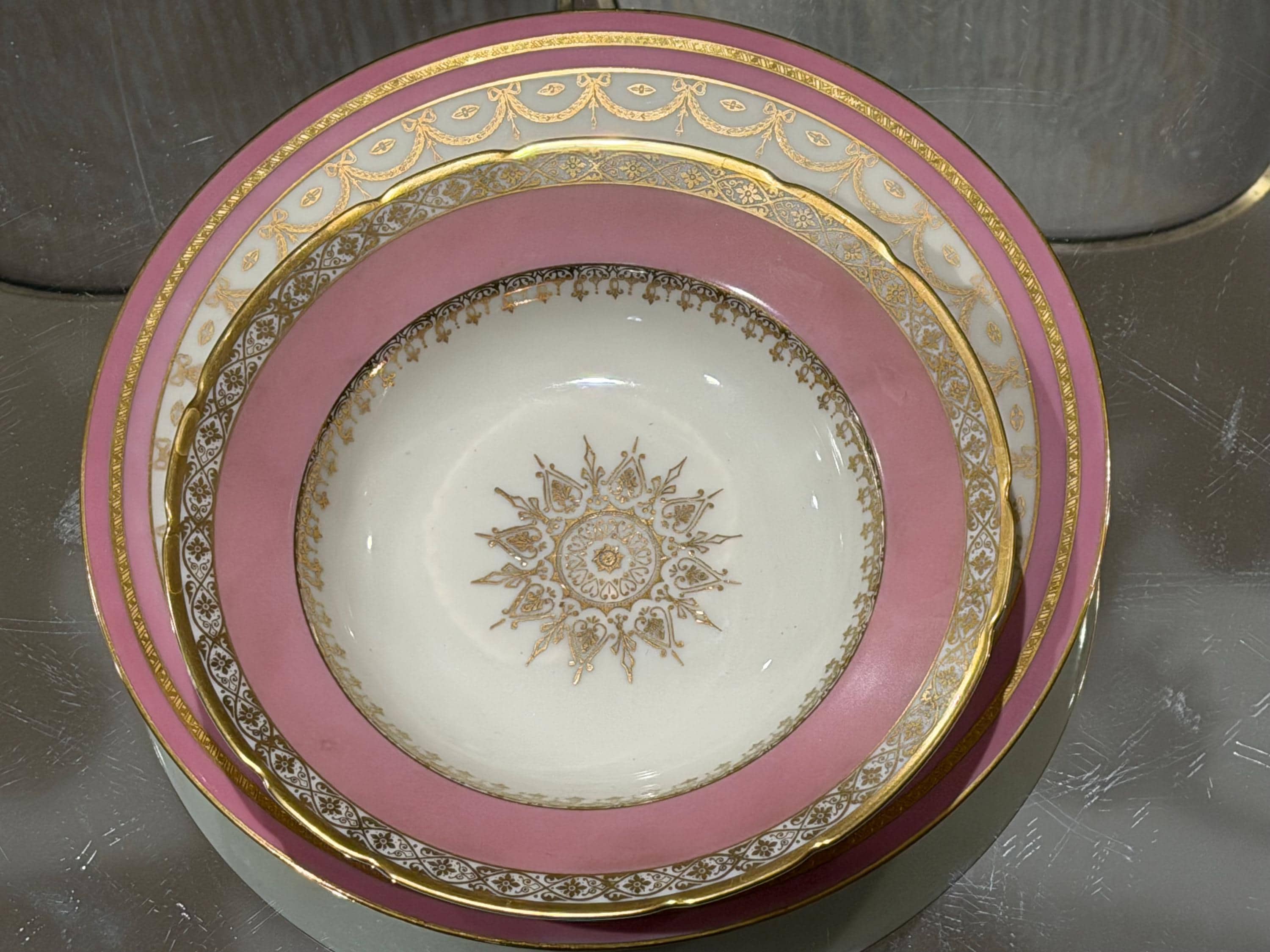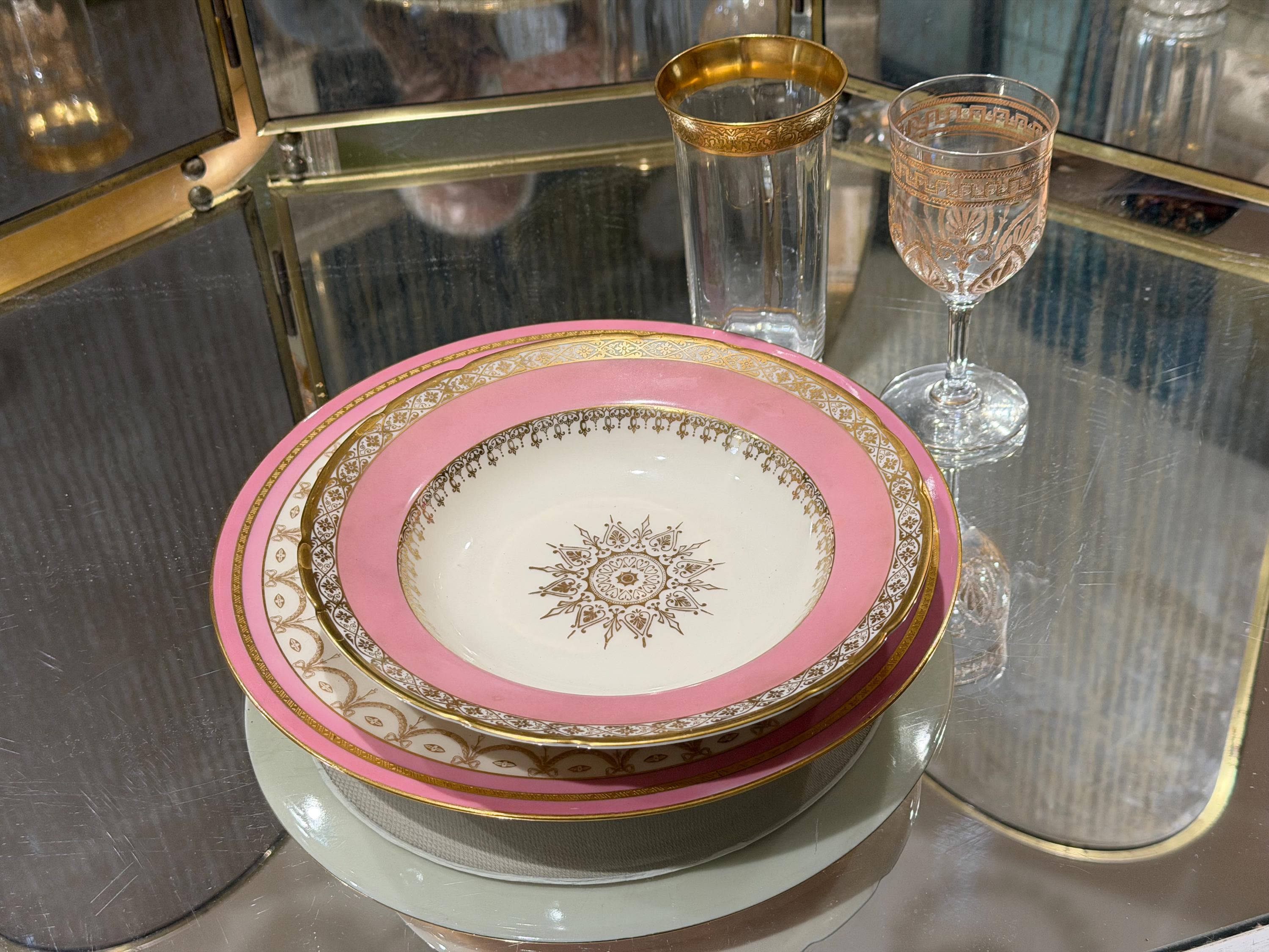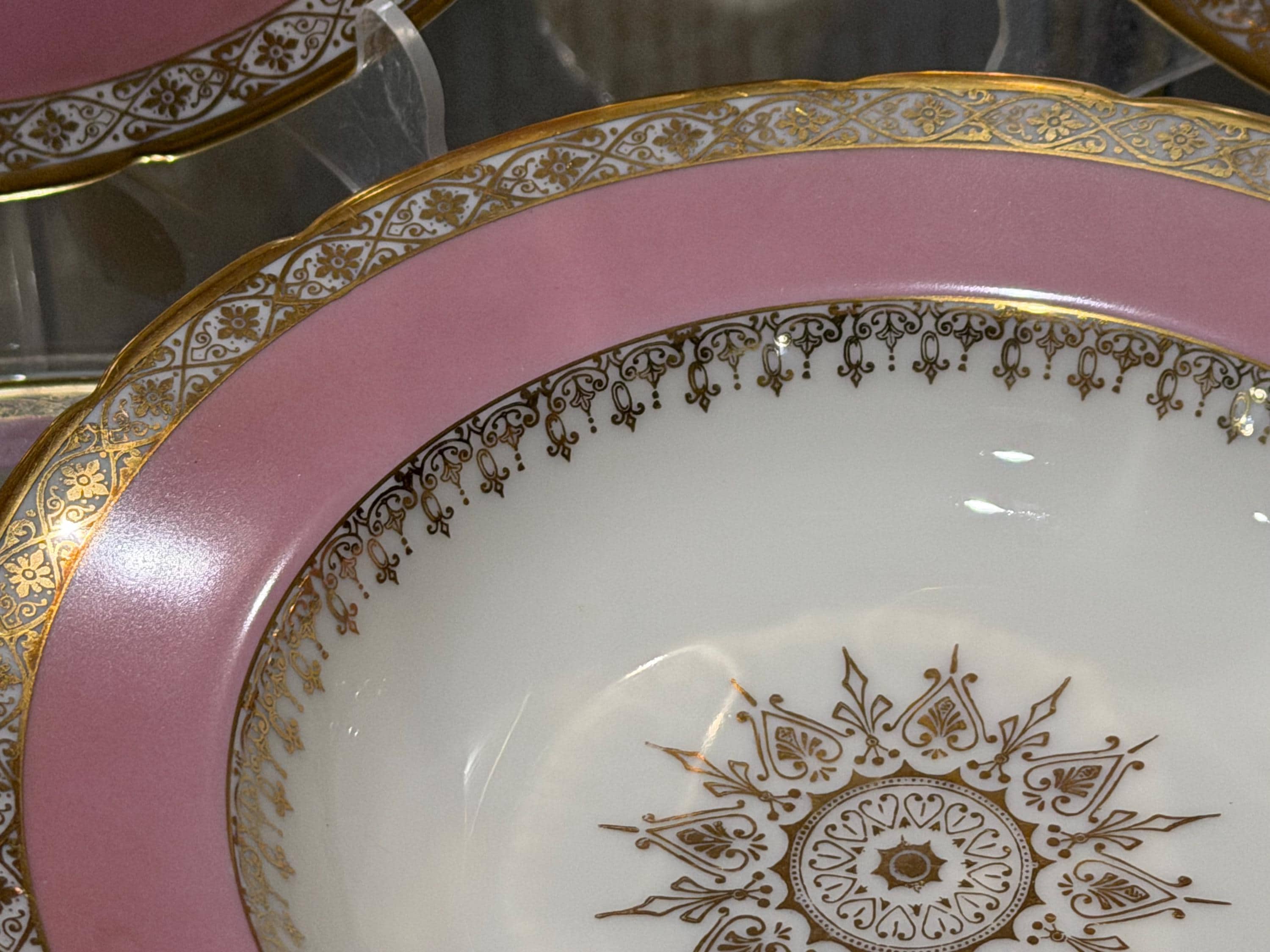 They have a soft pink border enhanced with extensive gilding in trim and the distinctive center design for the medallion.