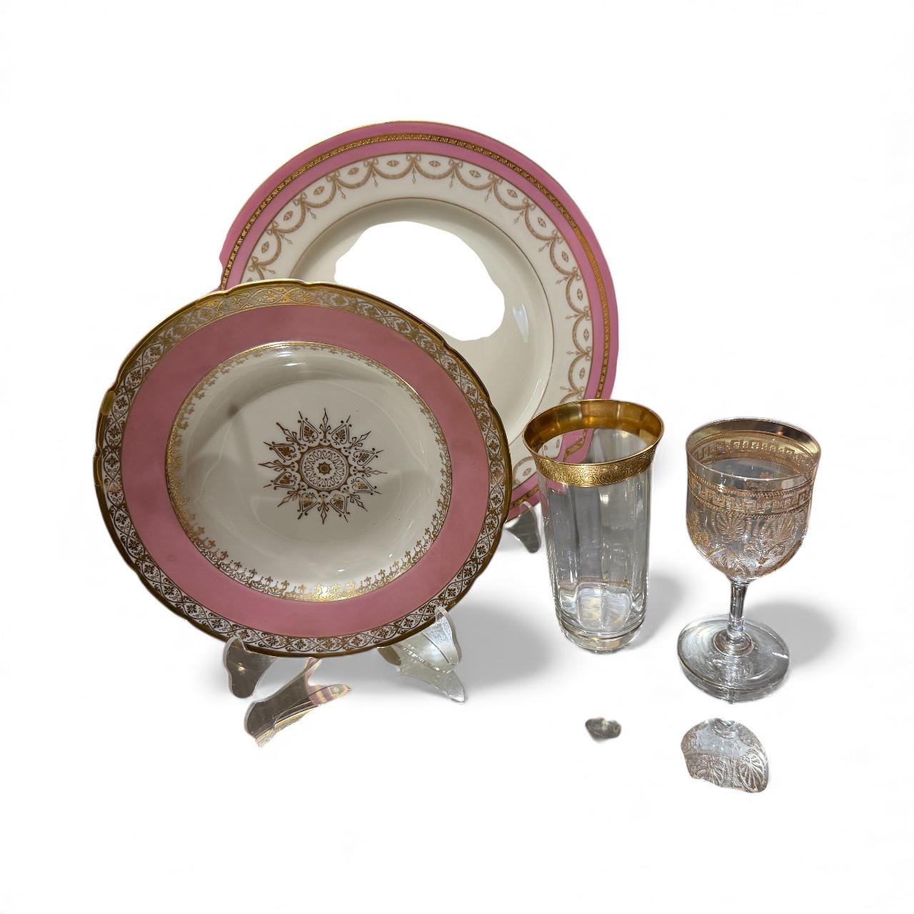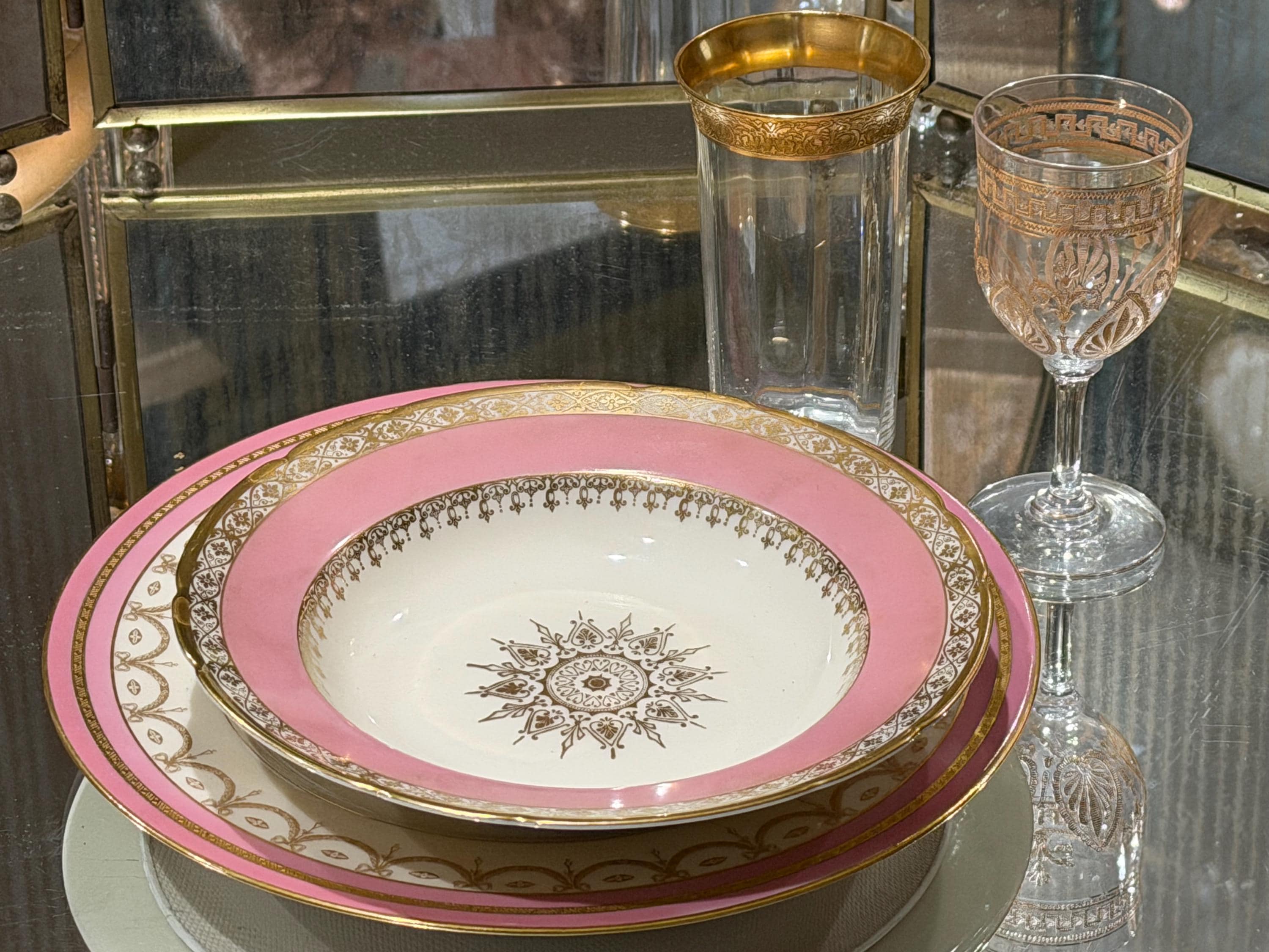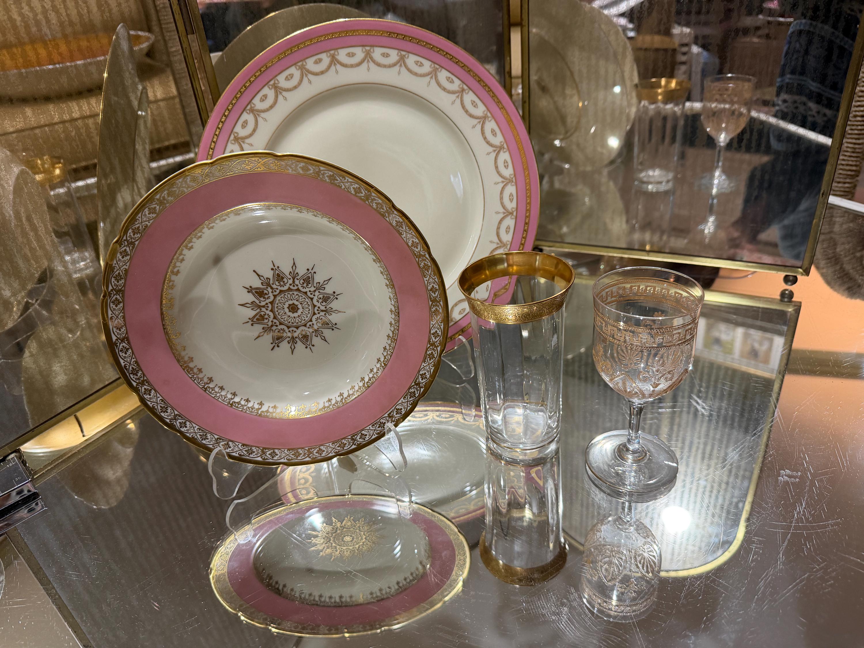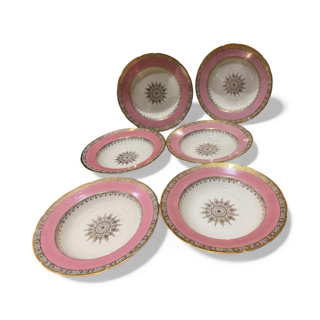 They have a soft pink border enhanced with extensive gilding in trim and the distinctive center design for the medallion.
