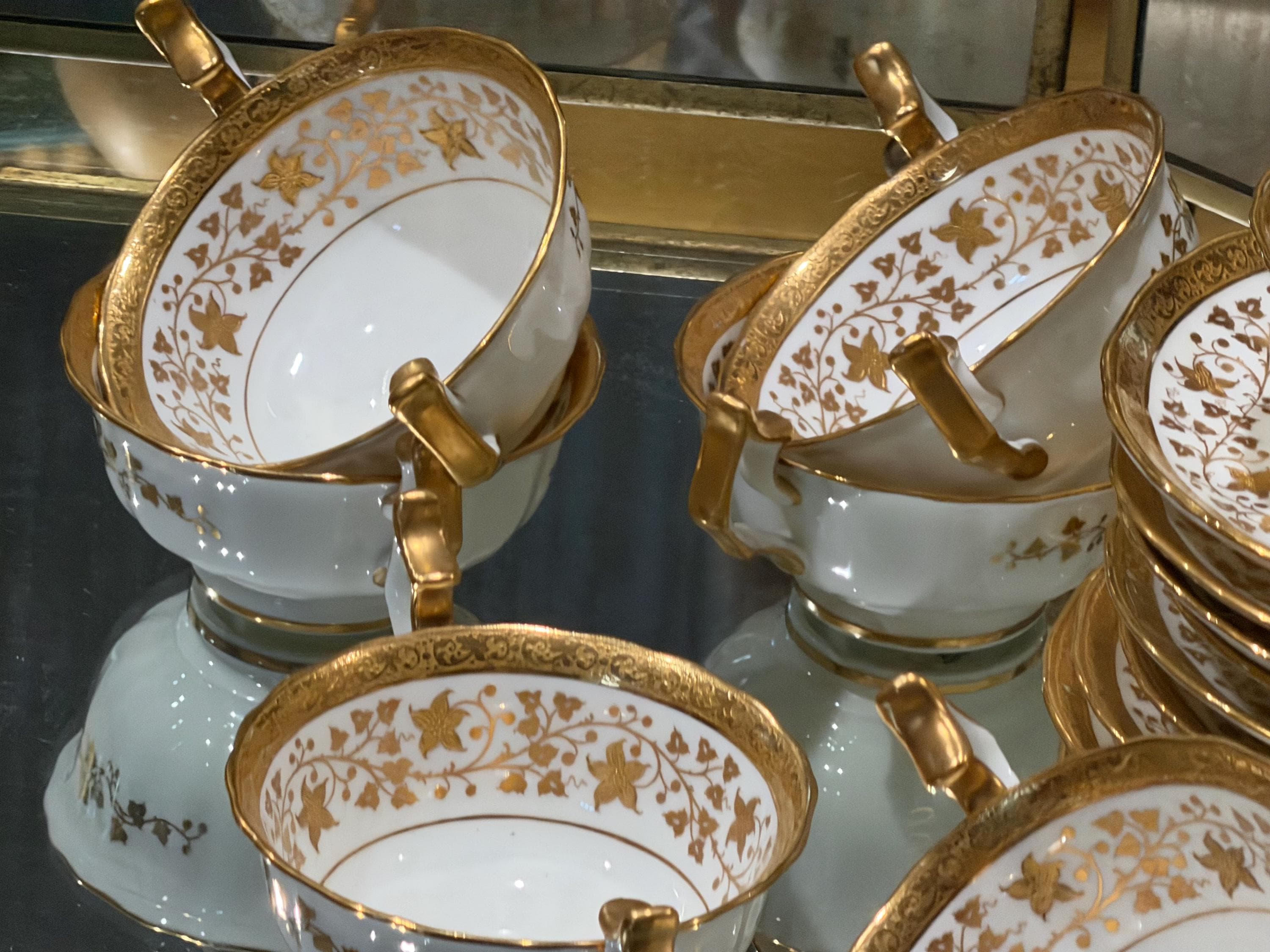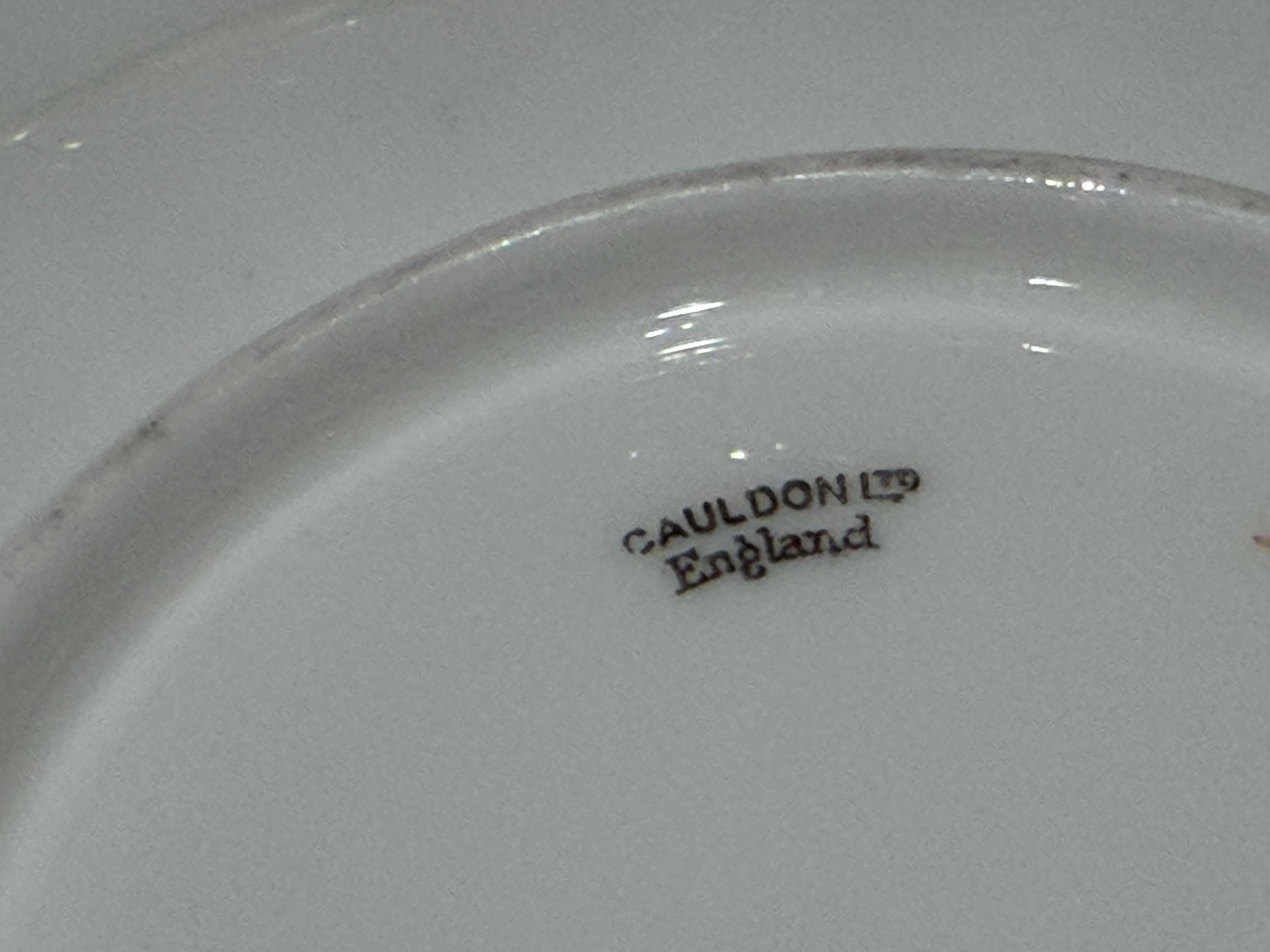 10 antique Cauldon bouillon soup bowl sets are offered.