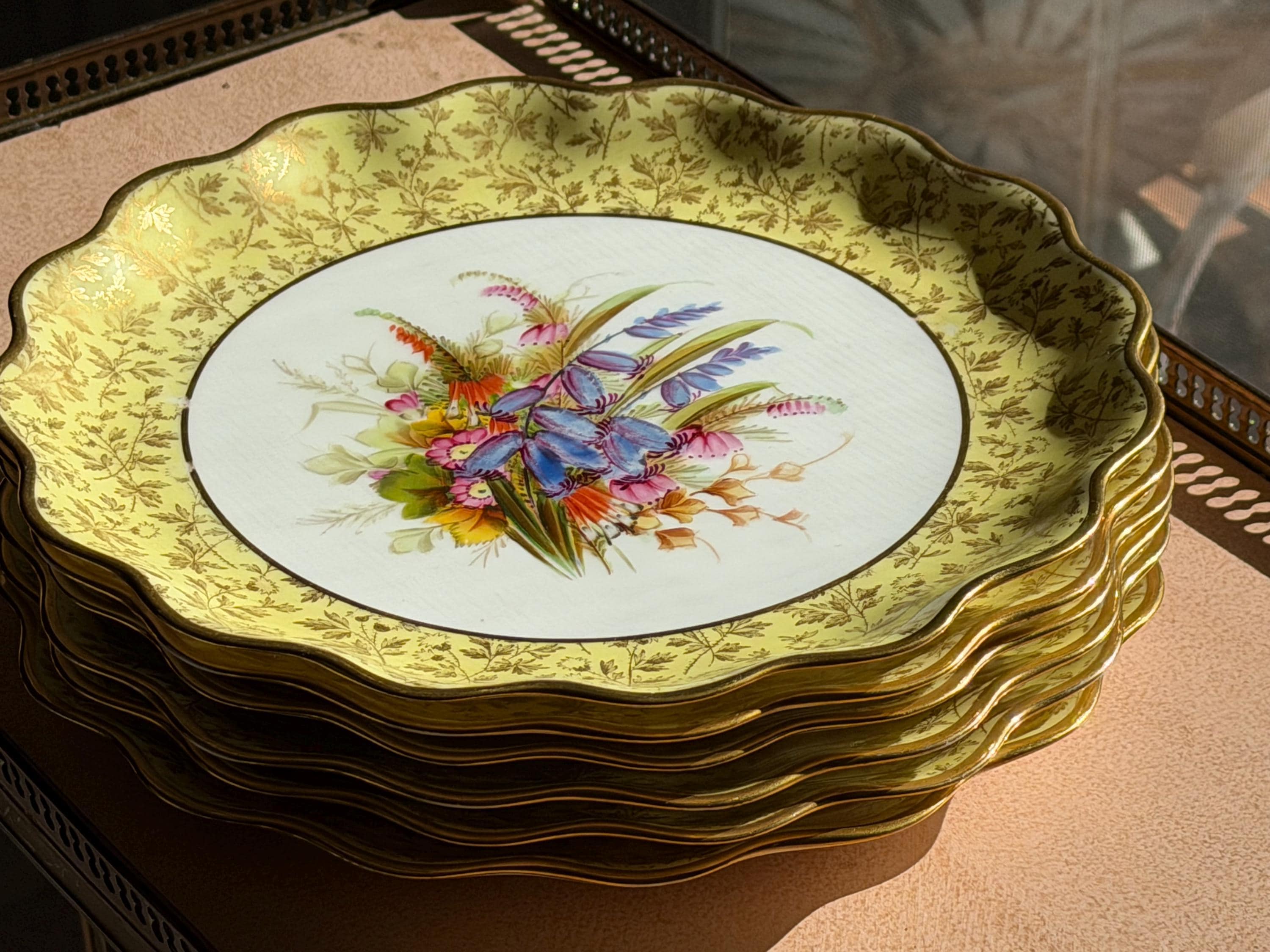 Offered is a set of six yellow antique Wedgwood dessert plates