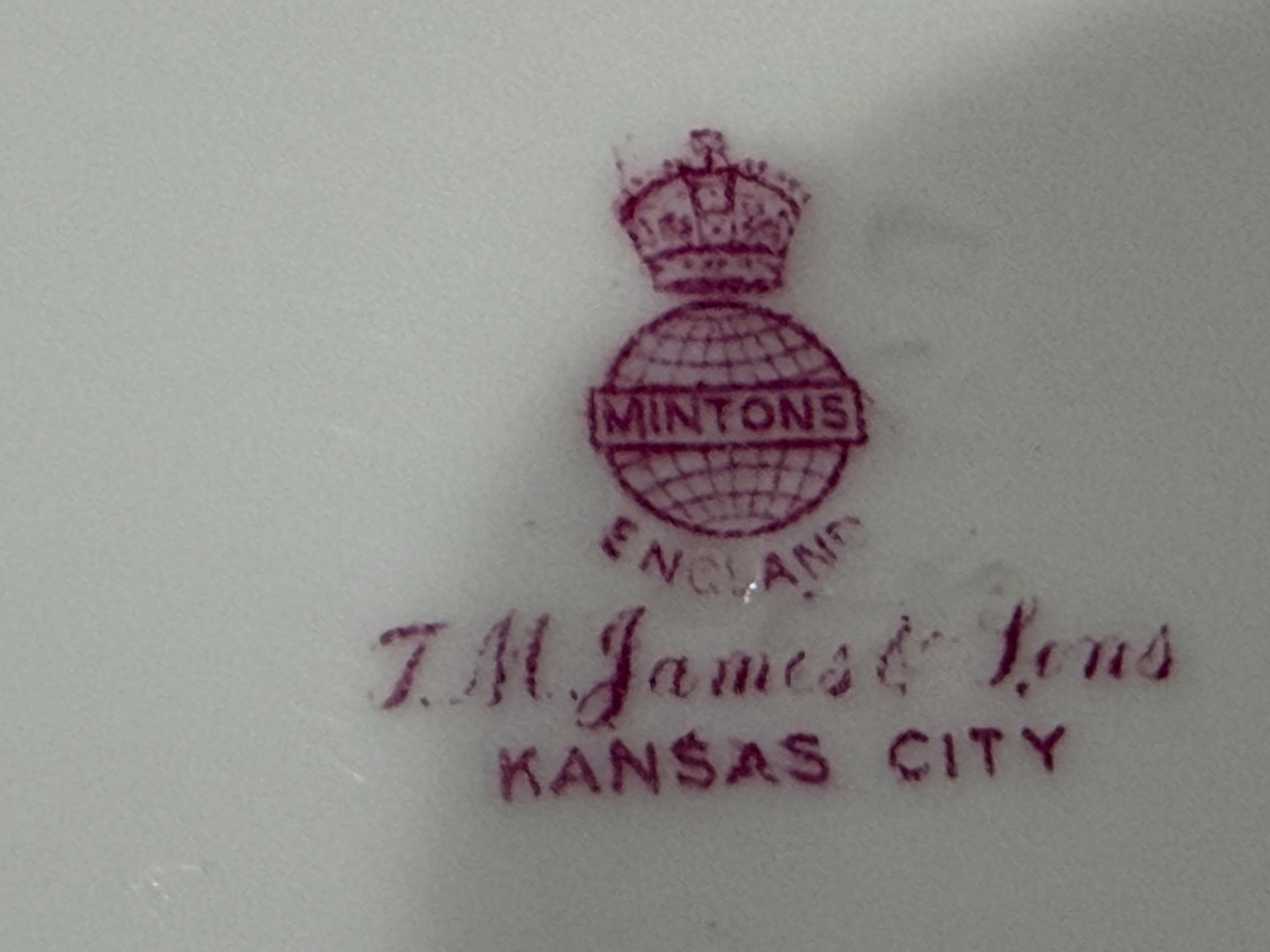 They were retailed by T.M. James of Kansas City Missouri, a store in early Kansas City that sold fine china.
